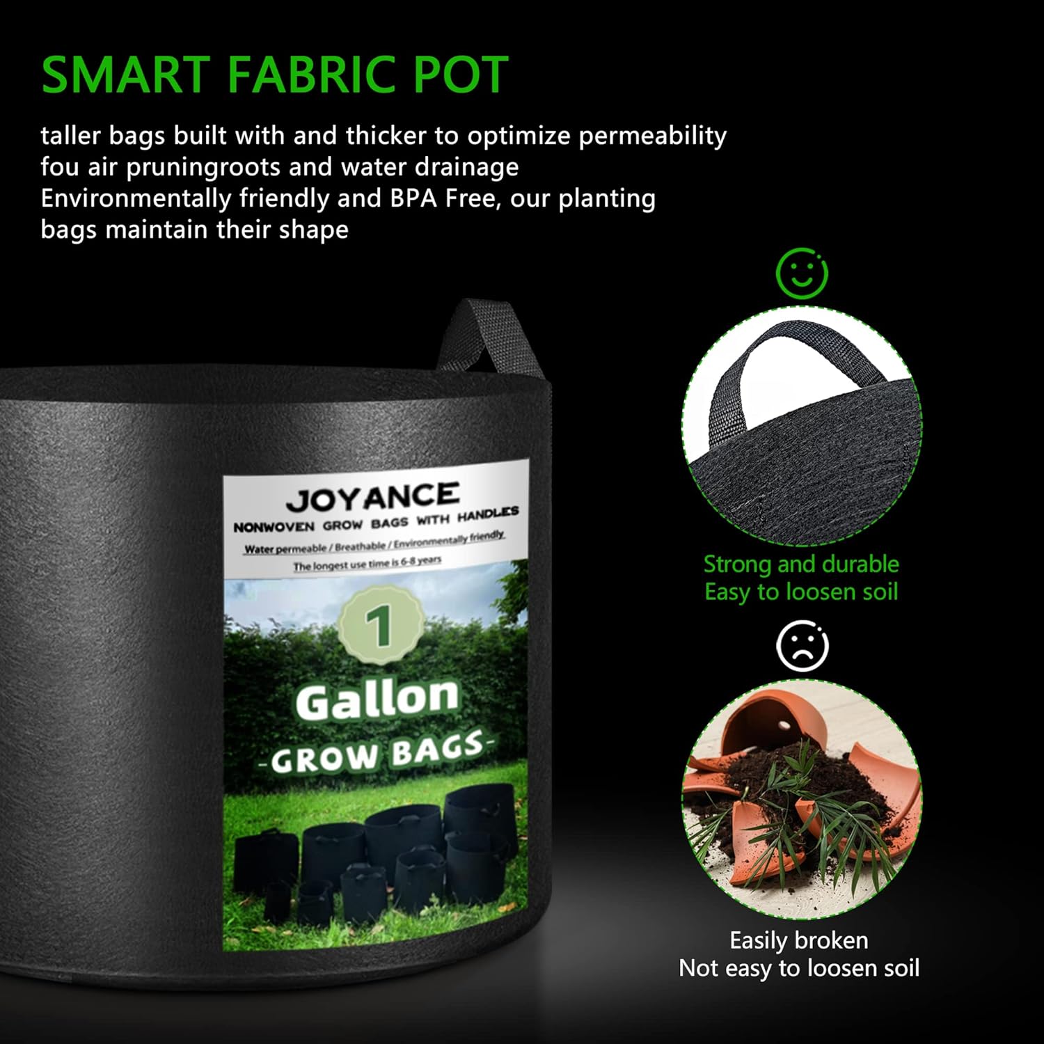 Patio or indoor growing operation. Can be used with conventional soil or soil mixes. Grow more varieties in less space in one grow bag. Create a quick and easy garden.