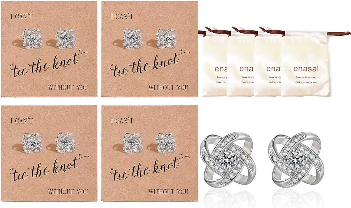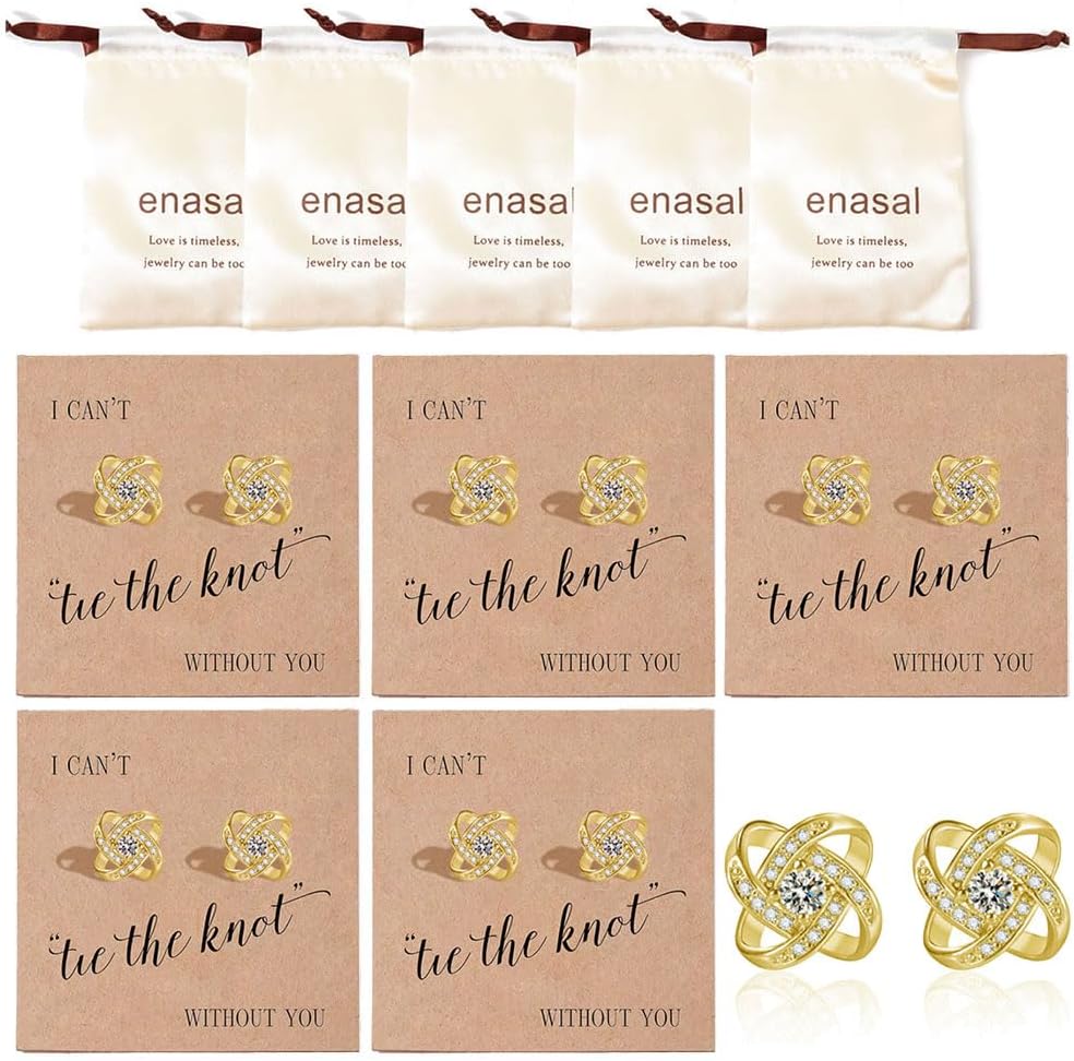 1/4/5/6Pcs Bridesmaid Proposal Gifts,18K Gold Plated Earrings, Love Knot Bridesmaid Earrings from Bride for Wedding