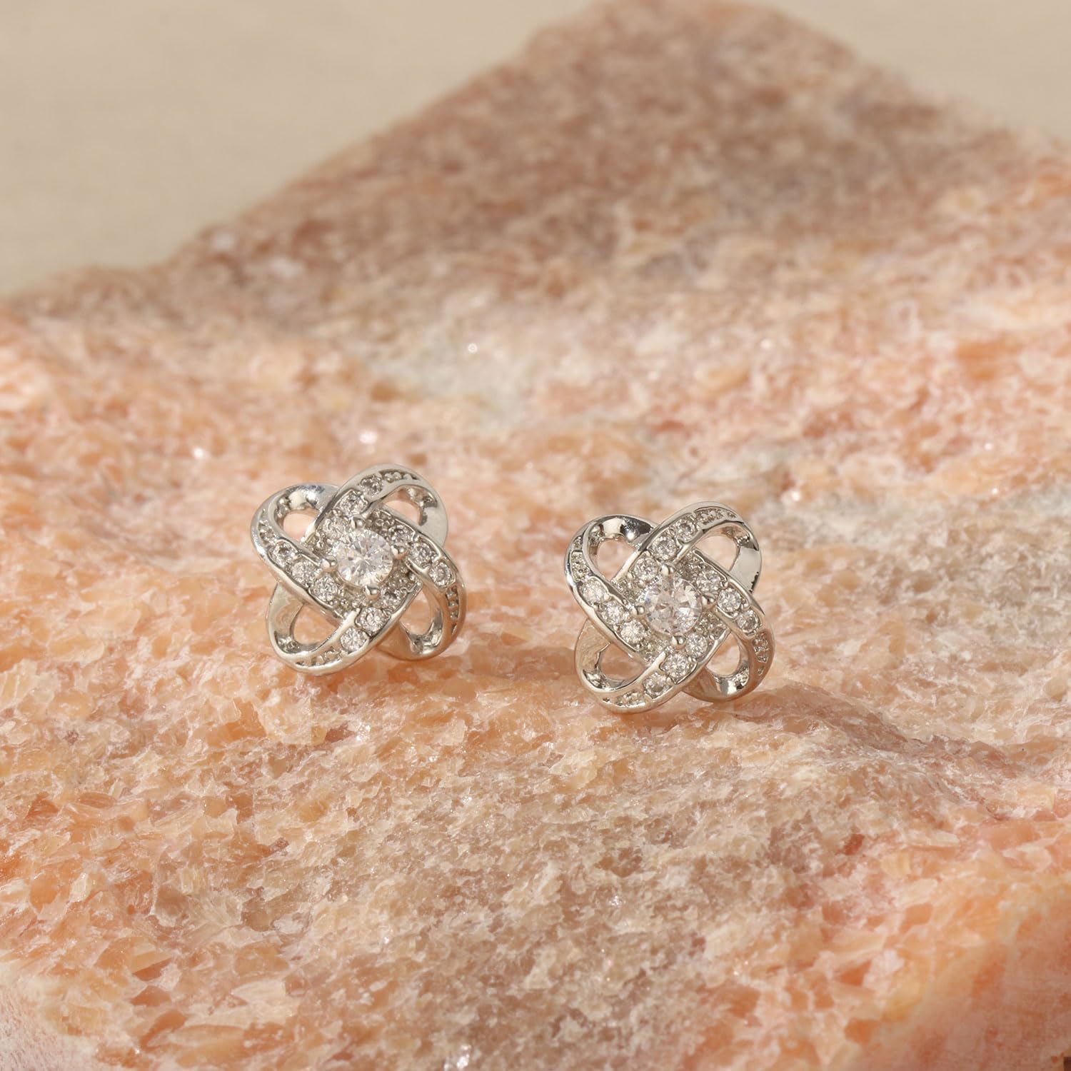 • 【Unique Design】This love knot earrings featuring two intersecting knots and shining crystal on the top, each knot and crystal exuding a conspicuous luster,The combination of silvery knot and bright crystal makes the earrings elegant and exquisite,effortlessly complements any outfit.