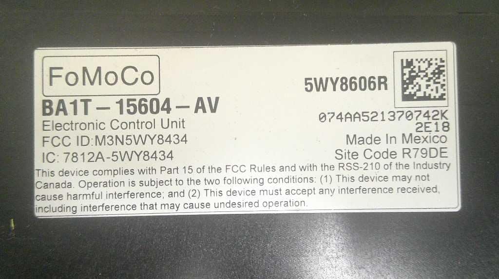 "> Description Donor Vehicle VIN: Model: Year: 0 Mileage: 0 (0 = not available or ) Stock Number: USC30 Store Number: 1 Part Detail Part Grade: A Part Category: U Part Placement: Notes: BA1T15604AV This part will fit these makes and models with these options EDGE 11 Communication; (voice recognition, Sync module), ID BT4T-14D212-AJ EXPLORER 11 Communication; (voice recognition module, Sync), ID BT4T-14D212-AJ MKX 11 Communication; (voice recognition, Sync module), ID BT4T-14D212-AJ MKX 11 Communication; (voice recognition, Sync module), ID BT4T-14D212-AM