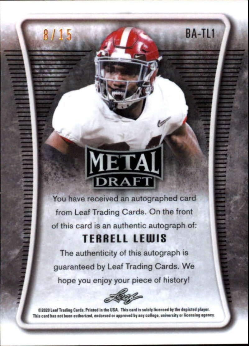 2020 Leaf Metal Draft Autograph Wave Purple Football S15 #BA-TL1 Terrell Lewis Auto Alabama Crimson Tide Official Player Licensed Rookie Card