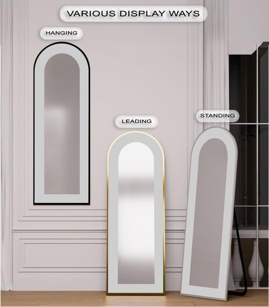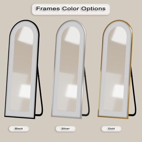 Arch Shaped Floor Mirror with Metal Frame – Gold, Black, or Silver | Leaning, Standing, or Wall-Mounted Full Body Mirror Add artistic charm and functional elegance to your space with our Arch Full Length Mirror, designed to make a bold statement in any room. Whether styled in a bedroom, hallway, or living room, this arched floor mirror enhances your interior with timeless beauty. The edges of the mirror consist of pictures in the colors of your choice printed on tempered glass using the UV printing technique. The mirror itself is mounted on top of this printed tempered glass, giving it a vibrant, durable, and luxurious finish that stands out in any setting. Measurements; TOTAL SIZE (Uv Printed Tempered Glass + Mirror) : 23,5’’W x 67’’ H ONLY MIRROR SIZE : 17’’W x 60,5’’ H Choose from three premium frame finishes—Arch gold mirror, sleek black, or arch floor mirror silver—and enjoy flexible use as a Standing Floor Mirror, Arched Wall Mirror, or casually leaned for a designer look. This is more than a Full Body Floor Mirror with Stand—it’s a piece of functional art. Multiple Placement Methods, This arched floor mirror comes with a U-shaped bracket, which you can freely place in the living room or bedroom. For your convenience in hanging on the wall, special hangers are designed on the back of the mirror.Our premium mirrors are crafted by gluing 4mm tempered glass to a 4mm mirror, combining durability and style. The tempered glass features UV printing for a glossy, vibrant look, while both the glass and mirror have smooth, grinded edges for safety. The hidden metal hanger ensures a sleek, ready-to-hang design, making it an elegant and functional addition to any room.