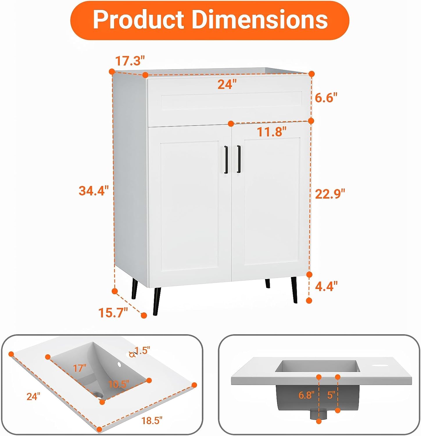 | Assembly Instructions Description | The vanity comes with pre-drilled sink holes and numbered parts, allowing for easy DIY assembly in approximately 30 minutes using just a screwdriver. |