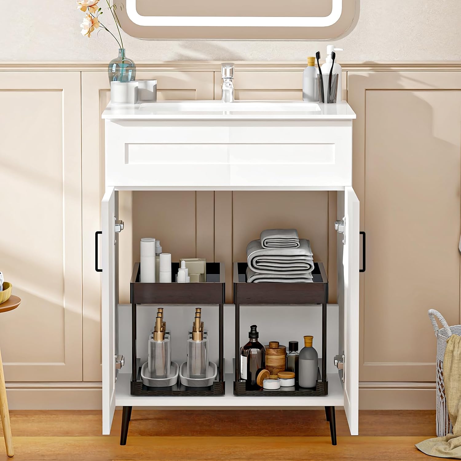 | Storage Options | Double-door cabinet with internal shelves |