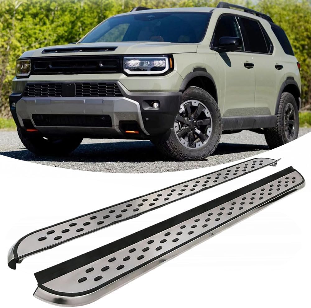 Upgrade your car with our stylish and sturdy Running Boards. Designed for Passport 2026, these side steps feature a unique-pattern step pad, providing a luxurious touch to your vehicle. The wide stepping area ensures comfort and safety for every entry and exit.
