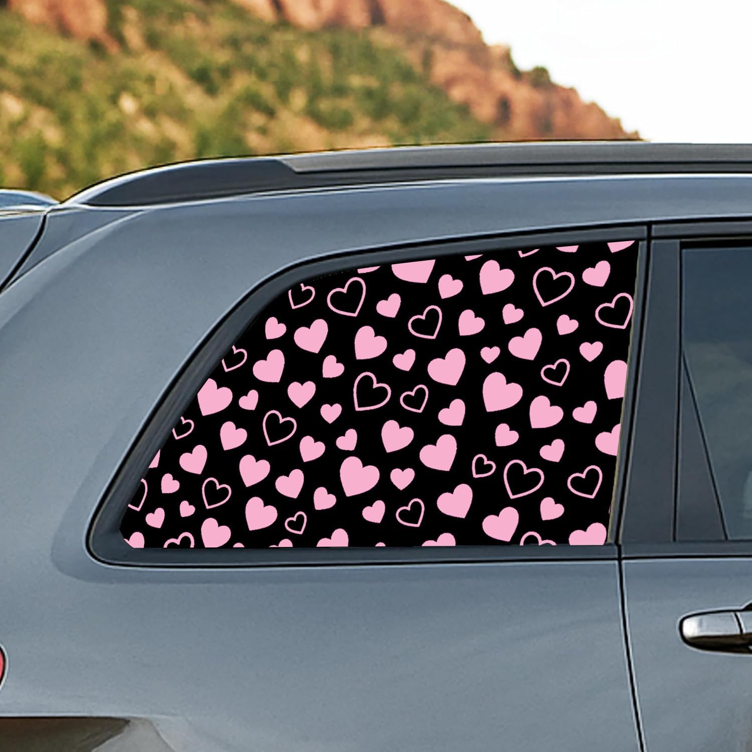 Personalize your vehicle with the 2PCS Universal Rear Side Window Heart Decal, a perfect blend of cute style and durable quality. Featuring a matte pink vinyl heart design, these decals transform your car’s rear side windows into a unique display of love and personality.Crafted from premium automotive-grade vinyl, these car heart decals are waterproof, fade-resistant, and weatherproof, ensuring they withstand sun, rain, and snow while keeping their vibrant pink finish. The rear side window heart decals are designed for cars, SUVs, trucks, and sedans, offering a universal fit for most vehicles.Installation is quick and easy with the peel-and-stick adhesive, which provides a secure bond to glass while allowing for residue-free removal. Each set includes 2PCS vinyl heart decals, sized to fit left and right rear side windows for a balanced, symmetrical look.Whether you’re decorating for Valentine’s Day, surprising someone special, or simply showing your love for pink heart stickers, these decals make a thoughtful gift. Add charm, durability, and a stylish finish to your ride with these matte pink car heart window decals.