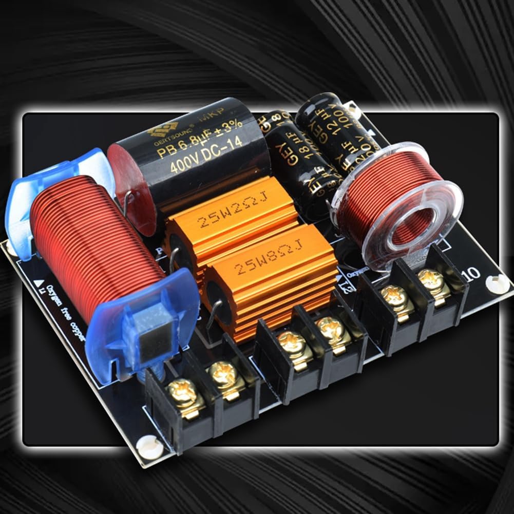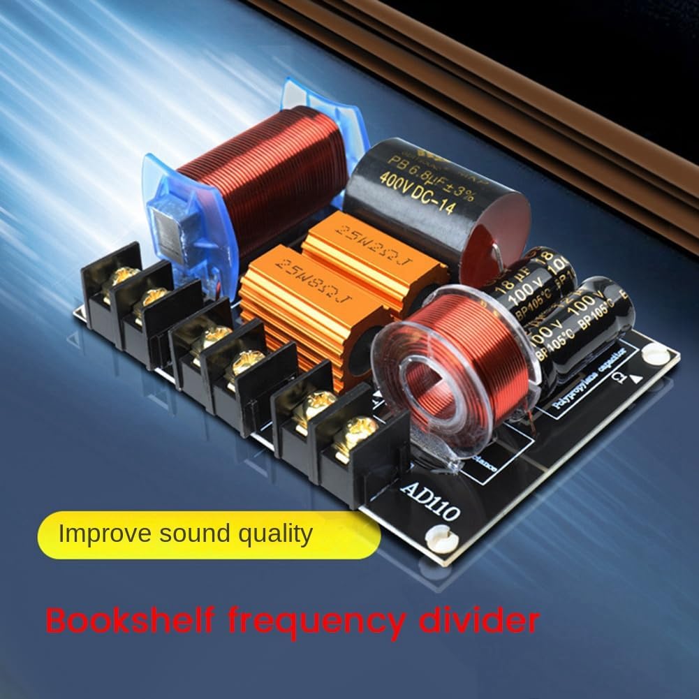 Viodmss Product Name:2 Way Frequency DividerTweeter:24dB/octWoofer:24dB/octColour:As ShownMaterial:Plastic+MetalPackage Contents:2 x Audio Frequency DividerOnly the above package content, other products are not included.Note: Light reflection and different displays may cause the color of the item in the picture a little different from the real thing. The measurement allowed error is +/- 1-3cm.