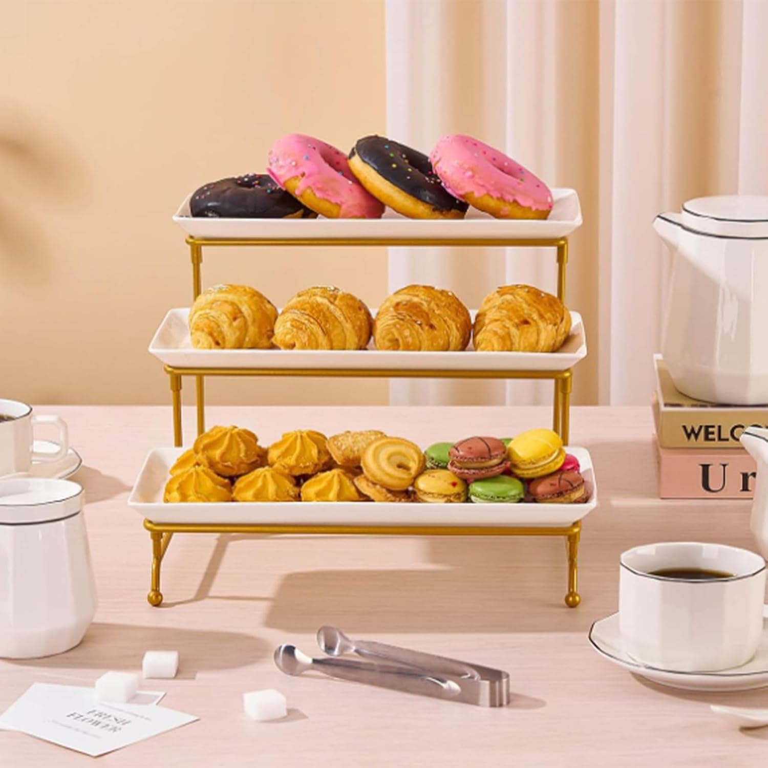 Features: Elevate your entertaining setup with the 3 Tiered Serving Tray Set, featuring a foldable stand reinforced by sturdy crossbars for secure multi levels displays at parties, dessert buffets, or kitchen storage. Crafted from premium porcelain with heat resistant iron supports, this 29 x 12.4cm white serving platter set safely conversion between microwave, oven, freezer, and dishwasher for versatile daily use. Ideal for home entertainers, professional caterers, and space conscious hosts seeking a elegant yet functional solution for organized food presentation and compact storage. Transform countertops into elegant dessert stations during weddings, holiday gatherings, or afternoon teas while securely showcasing cupcakes, finger foods, and decorative fruit arrangements. The simple white design complements any décors styles while stackable construction maximizes cabinet space, encouraging creative food arrangements through customizable tiered combinations. Specifications: Materials: Melamine + Iron Size:Approx.11.4x13.7x8.8inches Note: Please allow 1-2cm error due to manual measurement. Please make sure you do not mind before you bid. Due to the difference between different monitors, the picture may not reflect the actual color of the item. Thanks! Package Includes: 1Set 3 Tiered Serving Tray Set