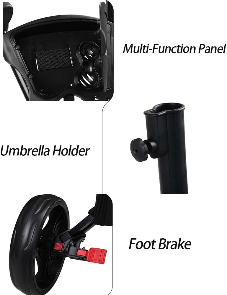 Product Features:1. Foldable2. Adjustable handle3. Insulated ice pack4. Umbrella holder/foot brakeProduct Specifications:Product Name: Golf CartProduct Material: Aluminum AlloyFolded Dimensions: 30.5x31.5x92.5cmUnfolded Dimensions: 85x70x113cmProduct Colors: Black cart with black wheels, Black cart with blue wheels, Gray cart with black wheelsCondition: newUnit count: 1Standard product ID: 1Feed ID: 0Product Weight: 12.75kgPackage List:Golf cart x1Note:Due to different lighting conditions, the actual color may differ slightly from the picture.Please allow 0-2cm error due to manual measurement. Thank you for your understanding.If you encounter any problems while using our product, please contact us. We are happy to learn from your feedback and continuously improve.