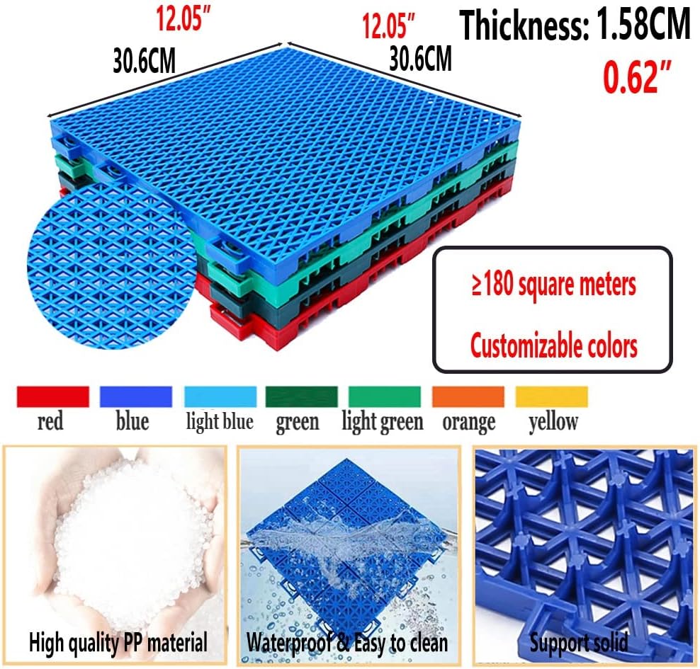 Transform your space with our versatile modular interlocking cushioned floor tiles, perfect for both indoor and outdoor use. Designed to be UV resistant, these tiles adapt seamlessly to any environment, making them an ideal choice for patios, playrooms, gyms, and more. Enjoy the safety of our soft, non-slip surface that helps prevent accidents, providing peace of mind for families with children, elderly individuals, or anyone seeking extra stability. The cushioning effect not only enhances comfort but also provides a gentle massage for tired feet, similar to the benefits of anti-fatigue rubber flooring. Installation is a breeze with our easy snap-together design. No tools or adhesives are necessary, allowing you to create a customized flooring solution that can be assembled and disassembled for convenient storage or transportation. Maintenance is simple as well; just hose down the tiles for quick cleaning. The self-draining feature efficiently removes dirt and debris, while occasional scrubbing with soap will keep your flooring looking fresh. With a thoughtfully designed drainage hole system, our tiles ensure fast water flow and promote air circulation underneath, preventing mold and mildew buildup. Specifications: - Material: PP - Size: 12.05 x 12.05 inches (30.6 x 30.6 cm) - Thickness: 1.58 cm (0.62 inches) - Shape: Square Elevate your living space with our cushioned floor tiles, where safety meets comfort and convenience.