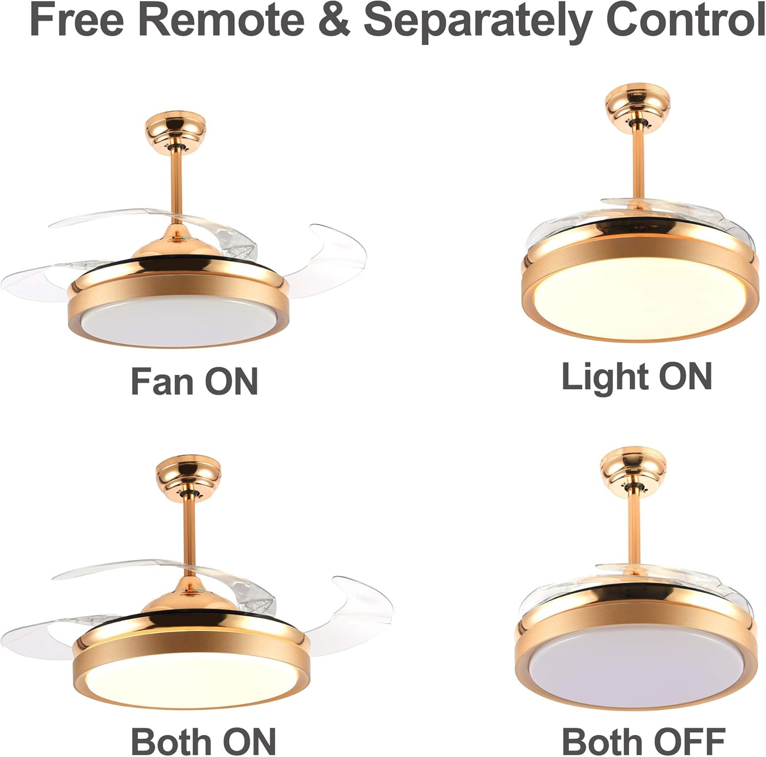 Features: Add this minimalistic type ceiling fan to your home for a clean look. The fan with retractable blades and supports automatic scaling, when the retractable ceiling fan is not working, the fan blades will retract automatically. The speed and light can work separately, you can use the fan without turning on the light by controlling the remote control. This ceiling fan with LED light and support CCT Dimmable (Color Temperature Dimmable), can't be gradually dimmed. Exclusive motor technology and remote system that ensure your fan will remain quiet for life. Product Specification: With 3 retractable blades. CCT Dimmable: Warm White/Neutral White/Cool White) 4 timing options: 1/2/4/8H sleep shutdown 3-speed: low/medium/high Sloped Ceiling Adaptable: Max 15° Rating: Dry Location Only / Indoor Use Only Hardwired, Assembly RequiredUL Listed for core parts ETL Listed for ceiling fan PLAESE NOTE: Please make sure to use it in a dry environment. Please install the ceiling fan by the instruction manual under the premise of ensuring safety. Please feel free to contact us if you ever encounter any questions. WARRANTY: We provide a one-year warranty service, we will provide free replacement service of parts within the warranty period; if the damage is caused by improper use, it will not be included in this service. If you find any quality problems or missing parts after you receive the goods, we will also provide free replacement services. We have 24-hour customer service, please feel free to contact us if you ever encounter any questions. Tips: Are you still worried that the fan blades are difficult to clean? Do not worry! If you want to clean the fan blades, no need to disassemble the ceiling fan and just stretch the fan blade and wipe it with a towel.