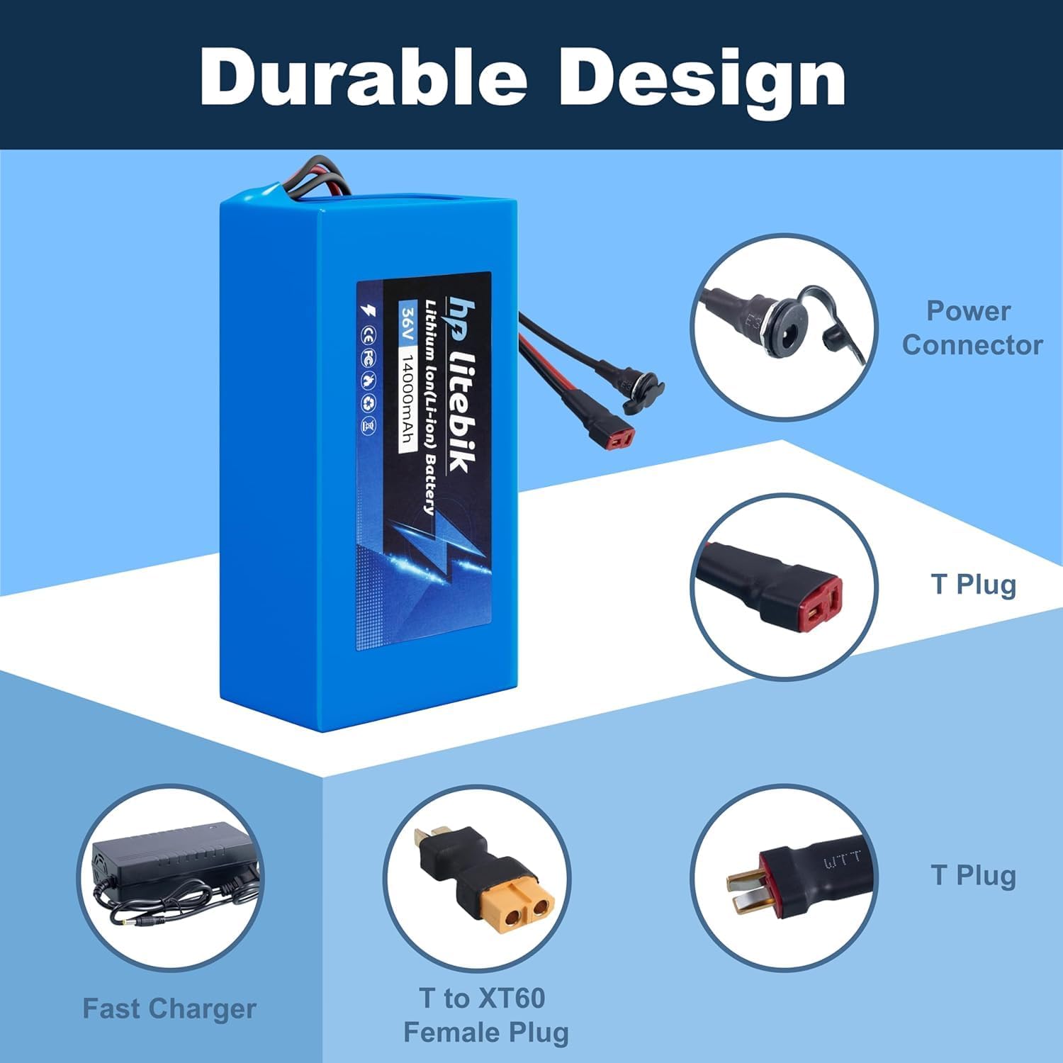 | BuiltIn Media | Battery, Charger, T plug expansion cable, T to XT60 Female Plug |