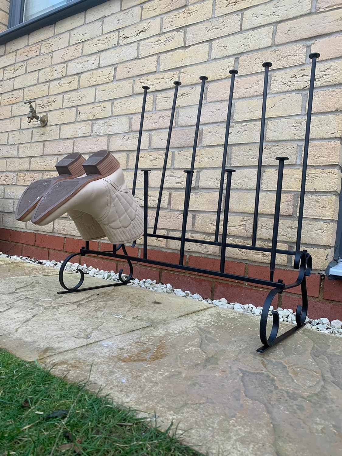 Industrial Metal Welly 4-6 Pairs Boot Rack is the absolute must for your doorway this season, keeping your home free of a mountain of muddy wellies. It's designed with two rows of vertical rods at different heights, for larger wellies at the back, to smaller wellies at the front. Spacious enough to fit six pairs, it really is perfect for the whole family and even friends. Crafted from steel and designed with two rows of vertical rods of varying heights, this welly rack is spacious enough to fit six pairs of wellies making it perfect for the whole family. Its stunning industrial appearance is streamlined and sturdy yet slight enough for you to move it around the house to the desired room. With a wonderful modern aesthetic and available in 6pairs , the Farringdon welly stand will look great in any home interior. A real practical and useful item be it for home use work place sites where boots need to be worn riding schools or stables nurseries etc. For smaller halls or contemporary boot rooms, this simple welly boot stand will keep your boots tidy and organised. Simple, with clean lines and contemporary styling, this welly boot stand will hold 3 pairs of big wellies and 3 pairs of either children's wellies, or walking boots.