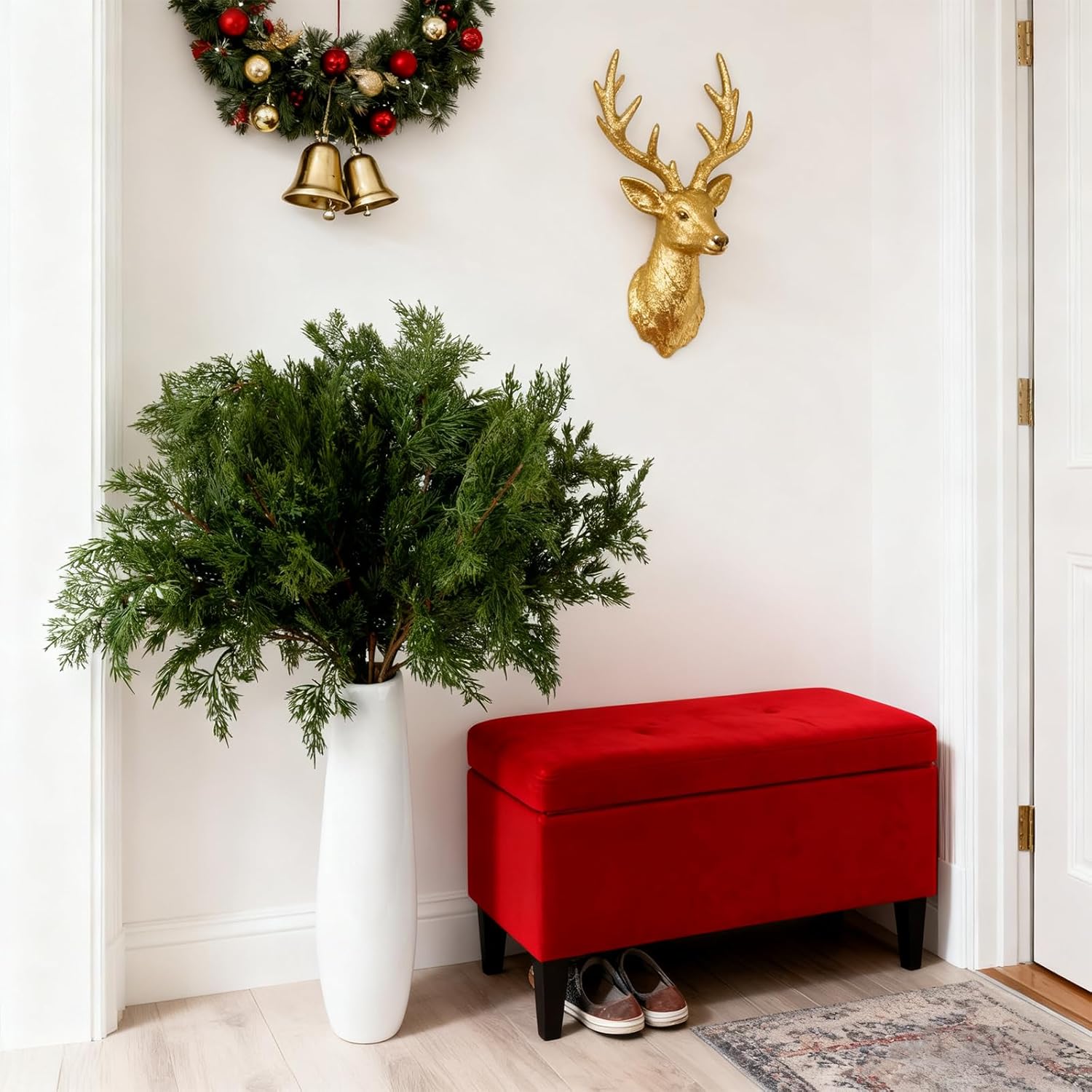 Color: Dark Green Material: High-quality plastic Dimensions: 31.5 inches Packaging: 4 artificial pine branches Our set of 4 Christmas artificial pine branches, each measuring 31.5 inches in length, features lush foliage with deep green needles that are soft and lifelike—as if freshly picked from a winter forest. These Xmas faux norfolk pine branches not only boast a natural appearance but also offer exceptional flexibility. They can be bent, straightened, or trimmed to effortlessly shape your ideal decorative form. Whether used alone or paired with other decorations, they add a fresh, natural touch to your space, making them an ideal choice for Christmas decor. Versatile Decorative Features 1. Winter Ambiance: Silk pine branches are a classic winter and Christmas element. Their deep green needles and natural shape instantly create a rich holiday atmosphere for your home or party space. 2. Essential Accent: Fake pine branches form the foundation of Christmas decor. Use them alone in a vase as a centerpiece, or layer them with other ornaments like red ribbons, gold bells, and baubles to create rich texture and festive depth. 3. Versatile Decor: Fake green pine branches suit diverse settings—Christmas tree adornments, mantel displays, doorframe accents, and table centerpieces—making them essential for crafting holiday-themed spaces.