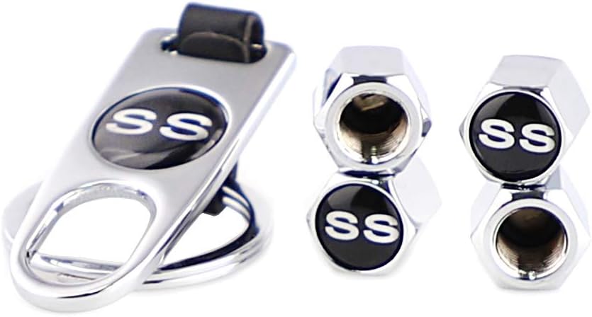 Specifications: Material: zinc alloy Package include: 5pcs/set(4pcs car tire valve stem air caps + 1pcs keychain wrench) Design Concept: The valve caps with SS logo is made of high-quality alloy material. Equipped with a silver wrench, which can tighten the valve cap for a certain anti-theft effect. It can also be used as a keychain. The design is simple generous and unique.Replace the original plastic valve cap, make your car more cool and beautiful. How to install: It doesn't require any additional tools, just use your fingers to unscrew the old cover and then screw on the new tire valve cover, which is very convenient. Note: Small items, please keep away from kids under 3 yrs.
