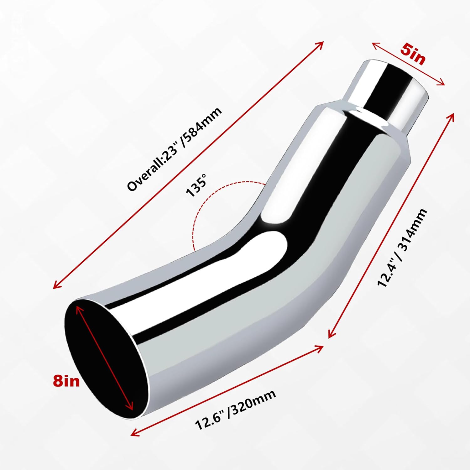 5 to 8 Inch Diesel Exhaust Tip Elbow with Clamp - Chrome Plated Or Black Coated Universal Exhaust Pipe Accessory for Trucks, Cars