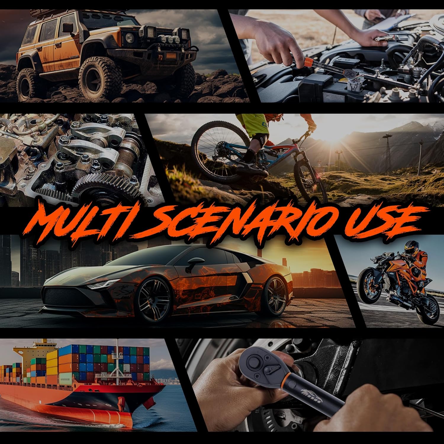 | Included Components | 1/2 inch torque wrench, 1/4 inch torque wrench, 3/8 inch torque wrench. 3 extensions,manual, Certificate. Blow molding box |