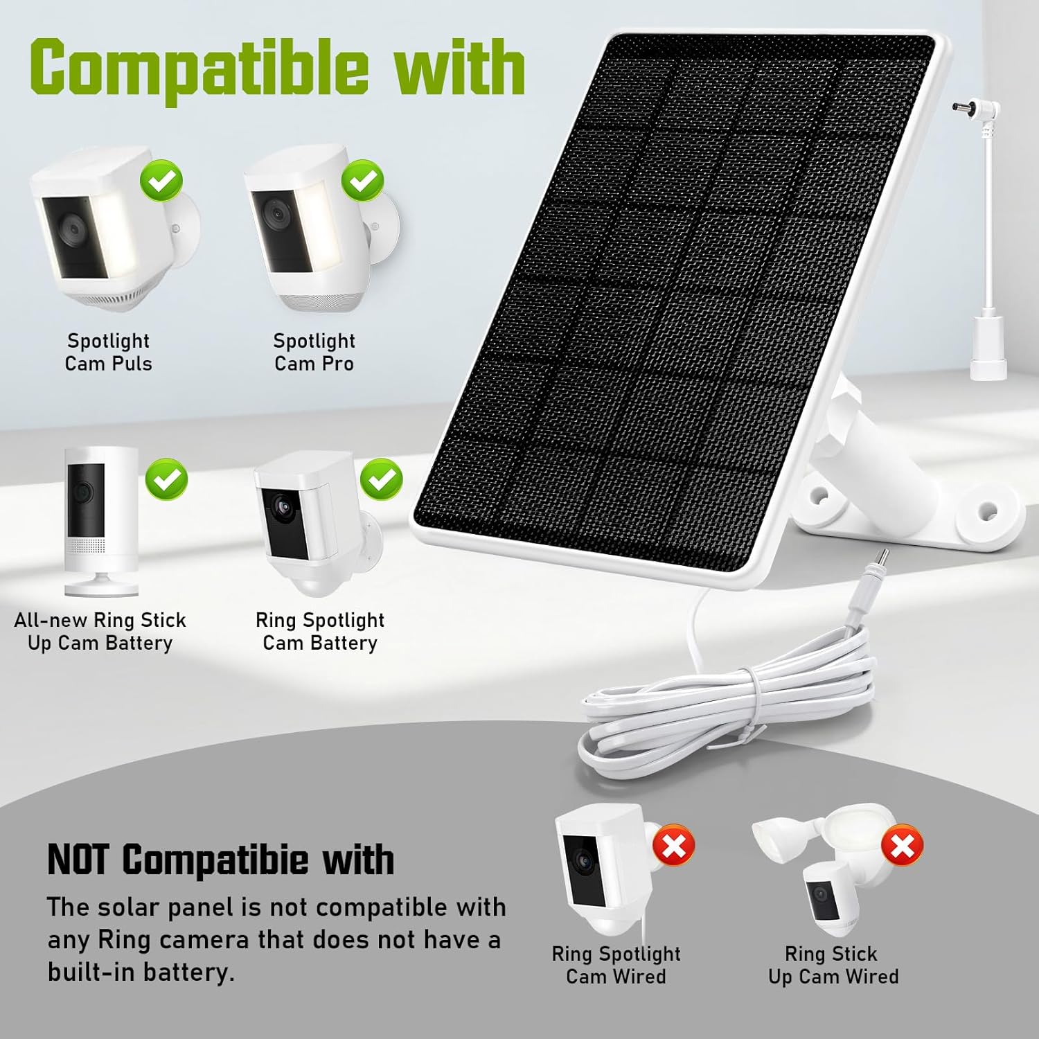 | Included Components | 2 x Solar panels, 2 x Screw bags, 2 x Secure wall mounting brackets, 2 x 9.8ft(3-meter) cables, 1 x User manual, 2 x Positioning stickers, 10 x Cable clip nails. |