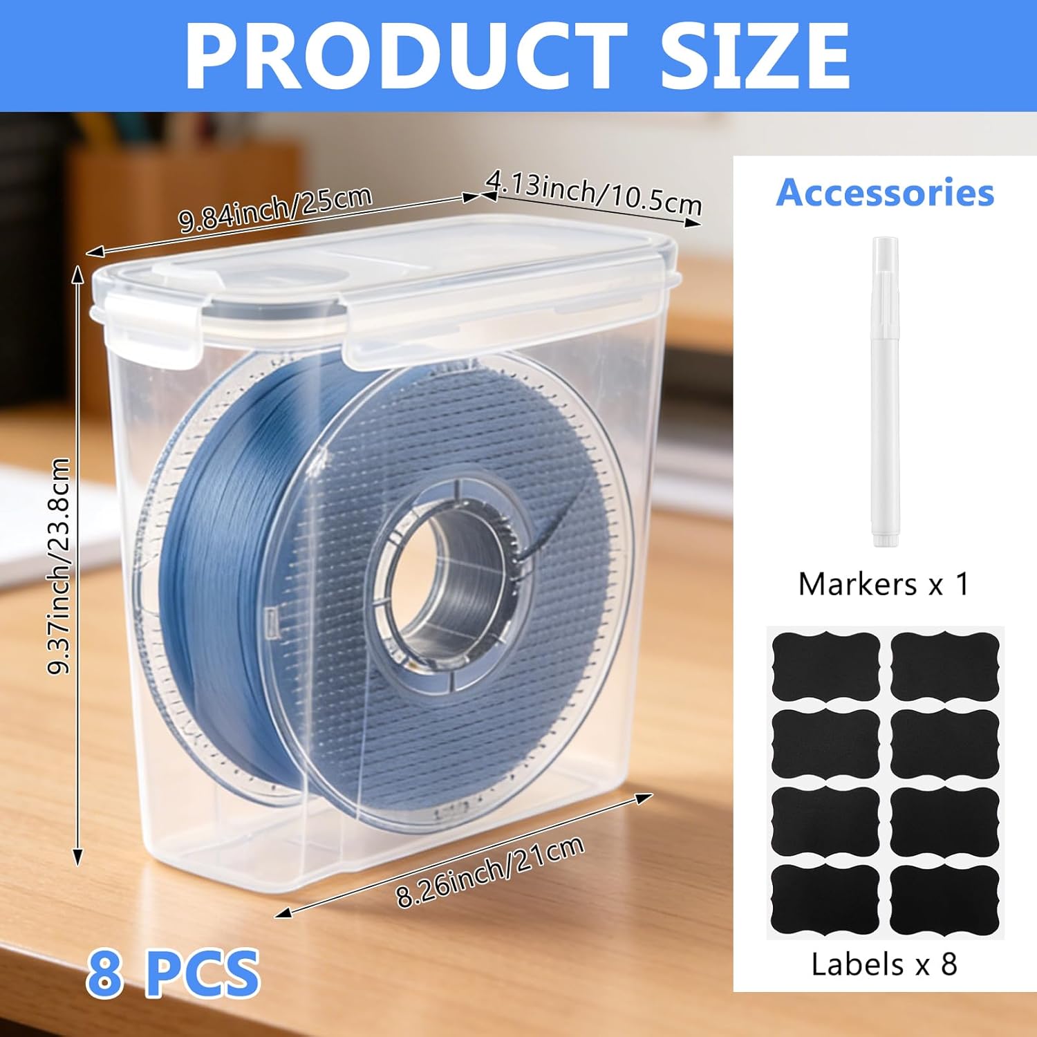 Features: Tired of brittle, moisture-ruined filament ruining your prints? This 8 Pack Filament Storage Box is your ultimate solution for reliable, long-term filament protection. Engineered for 3D printing enthusiasts, it ensures every spool stays dry, dust-free, and ready to deliver flawless results. Specifications: Material: Plastic Color: Clear/White/Black Size: 9.37 x 8.26 x 4.13 inches Package includes: 8 x Filament Storage Box with Marker&Writable Labels Notes: For manual measurement, please allow slight errors in size. The color may have a slight difference due to different screen displays.