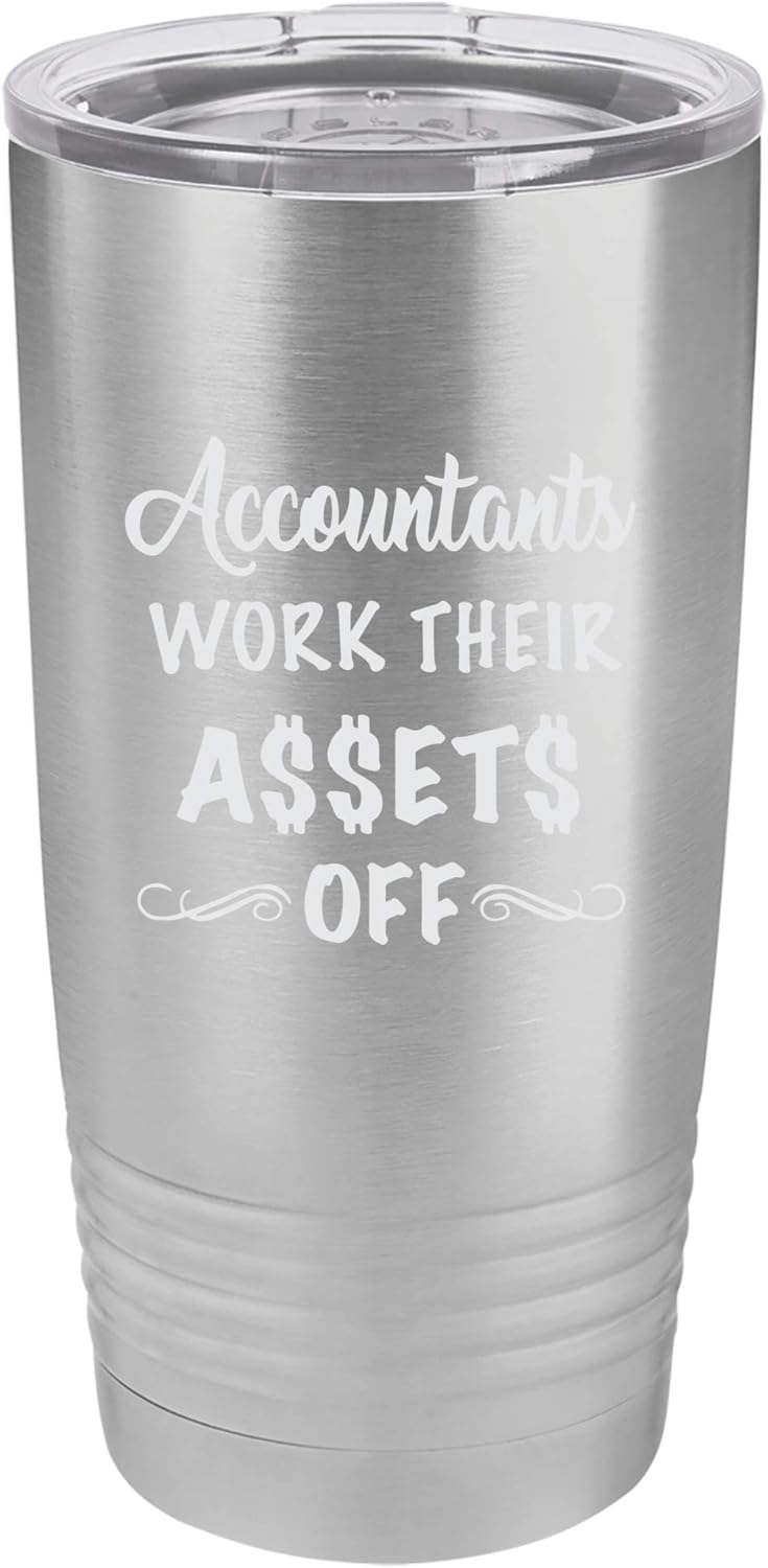 Enjoy your beverage at home or on the go with a wonderfully designed 20 oz. travel tumbler. Made of stainless steel, this tumbler is vacuum insulated to maintain the temperature of your drink for an extended period of time. Can be used for hot drinks and cold drinks or as a thermos. The tumbler measures 3 and 3/8" in diameter and 6 and 7/8" tall. Fits perfectly with most standard size cup holders. This tumbler is not dishwasher or microwave safe. Show your love to those who makes audit possible. They allow you to exploit loopholes and deductions, so adore them with its highly detailed design. A great gift to those who can't live without their calculators.