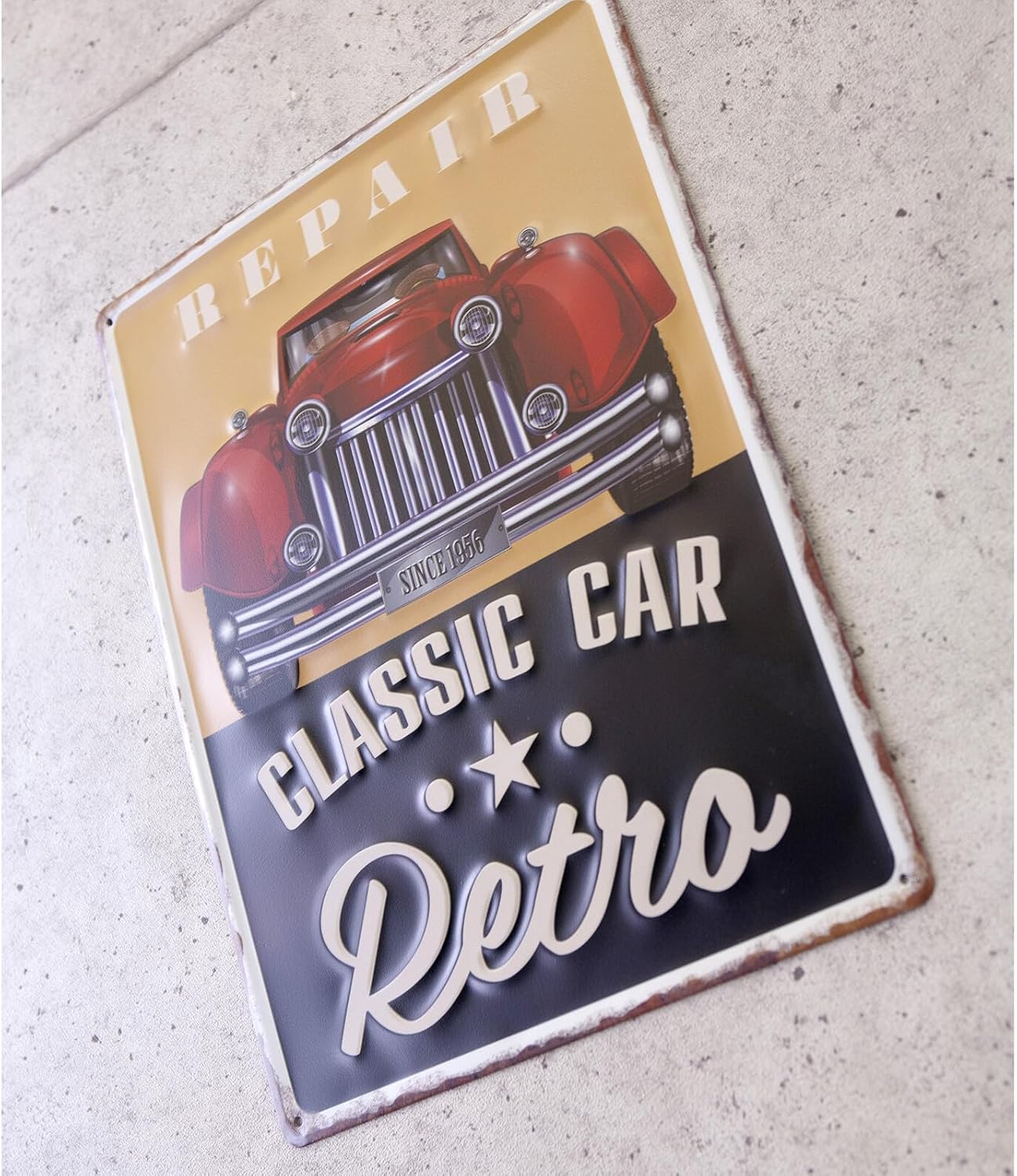 Antique embossing plate perfect for interior accents. Lightweight and easy to display anywhere. Size (W x D x H): 11.8 x 0.08 x 15.7 inches (30 Material: Tin Country of Origin: China.