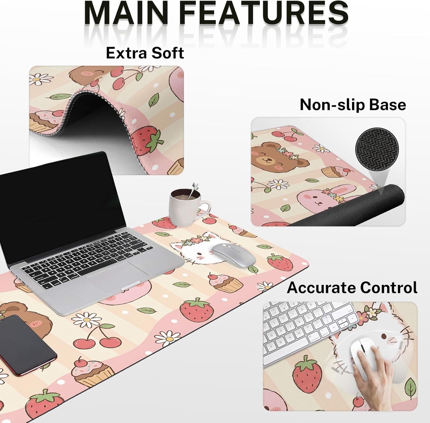 Size:Large Mouse Pad:35.4" x 15.7"Keyboard Wrist Rest:16.9" x 3.3"Mouse Wrist Rest:9.8" x 9.1"Coasters:3.9" x 3.9"Material:The wrist rests are designed to relieve pressure on your wrists,made from high-quality memory foam and soft,breathable fabric for a comfortable feel.The mouse pad features a smooth,fabric surface that allows your mouse to glide effortlessly,while the rubber base ensures the pad stays securely in place,preventing any unwanted slipping.Unique and Practical Design:Featuring high-definition printing,this mouse pad set comes in vibrant colors and visually appealing designs,perfect for adding a stylish touch to your desk.The delicate edge stitching protects against fraying and wear,ensuring the longevity of the pad and keeping it looking new for longer.Great Gift Choice:This large keyboard and mouse pad set will instantly enhance the look of any desk,creating a neat,organized,and aesthetically pleasing workspace.It's a thoughtful and practical gift idea for friends,family,colleagues,or anyone who spends long hours working at a computer.Packaging Includes:1 x Extended Mouse Pad1 x Keyboard Wrist Rest Pad1 x Mouse Wrist Rest Pad1 x Matching Coaster