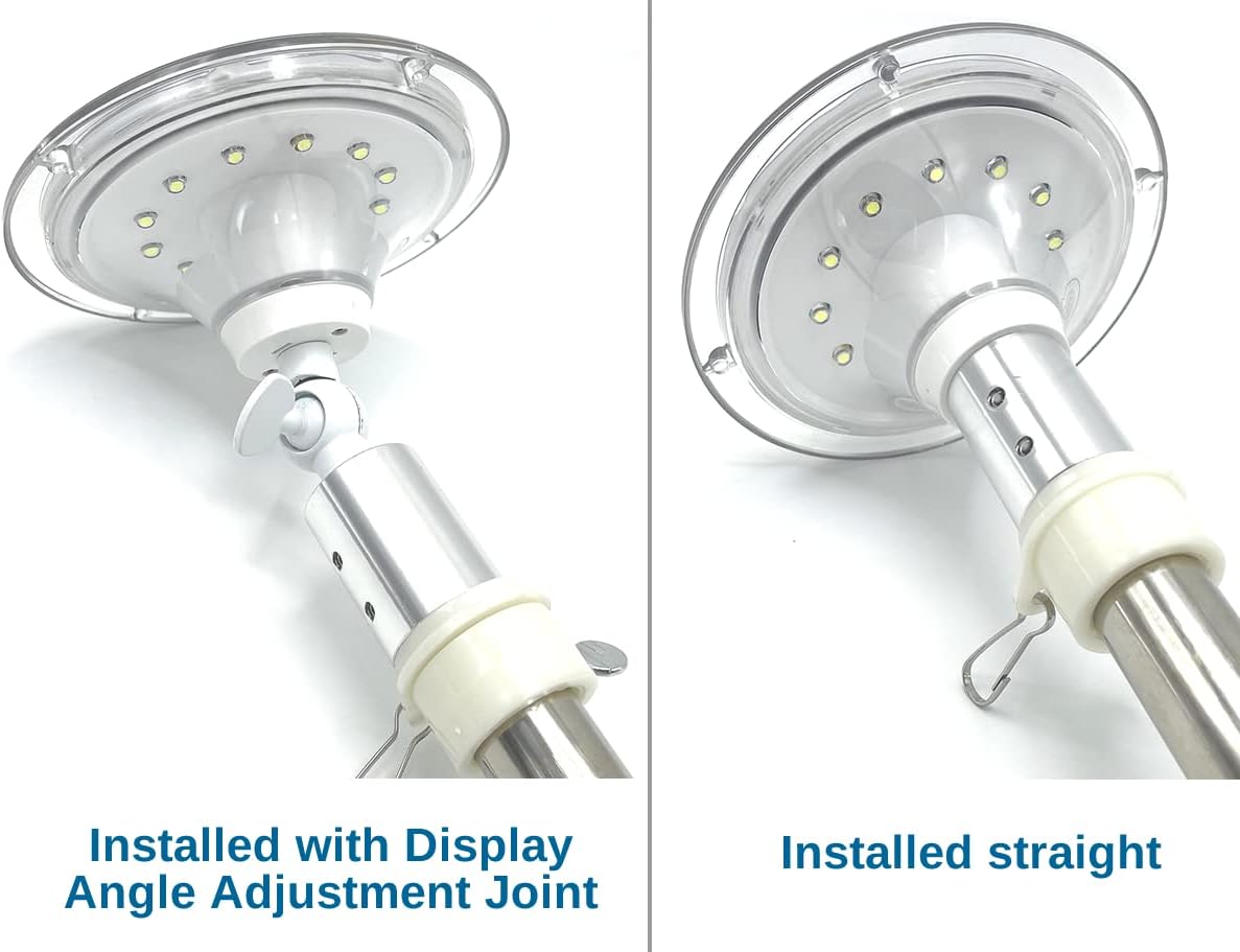 NOTE: This Solar Light will be in place of your flagpole top ornament. Please make sure your flagpole top globe is removable before you purchase this item. The Solar Flag Pole Light is a must-have for anyone who wants to show their patriotism and love for their country in a tasteful and convenient way. Designed for 5ft-8ft flagpoles, this outdoor residential flag light is perfect for the side of your house or any other location where you want to display your flag. Featuring a dusk to dawn automatic light sensor, this solar-powered flagpole topper will turn on automatically at night and off during the day. With its brighter LEDs, the improved design ensures that your flag will be illuminated in all its glory, even in the darkest of nights. The Solar Flag Pole Light is built to last and withstand harsh weather conditions, with its UV resistant clear polymer encasing ensuring that the solar lamp stays in pristine condition for years to come. The overcharge/discharge protection feature implemented in the design prevents battery damage and prolongs the life of the device. With its adjustable display angle, this flag light fits to most flagpoles with a 1 inch diameter, making it versatile and easy to use. Simply mount it on the top of the pole and let it do its job. Get yours today and show your patriotism in style! Operation instructions:1. Activating the solar light: The internal electronics are turned off from the factory for safety during shipment. Use the supplied plastic rod to press the power switch located inside the threaded connection to activate automatic light sensing operation. 2. Installation of the solar light: Remove decorative globe or ornament from your flag pole. Make sure the solar lamp is in automatic light sensing operation mode by pushing the ON/OFF switch. Thread the solar lamp into the display angle adjustment joint then screw into the aluminum connector. Insert the flag pole into the connector in place of the removed decorative globe. Tighten the two hex screws with the included hex key. Adjust your solar light angle to get most sunlight and illuminate the hanging flag properly. 3. Keeping the solar light operational: Place the solar lamp displayed in direct sunlight with no obstruction by shade from trees, buildings, glass, and etc. Battery can be fully charged in a full day in ideal direct sunlight.