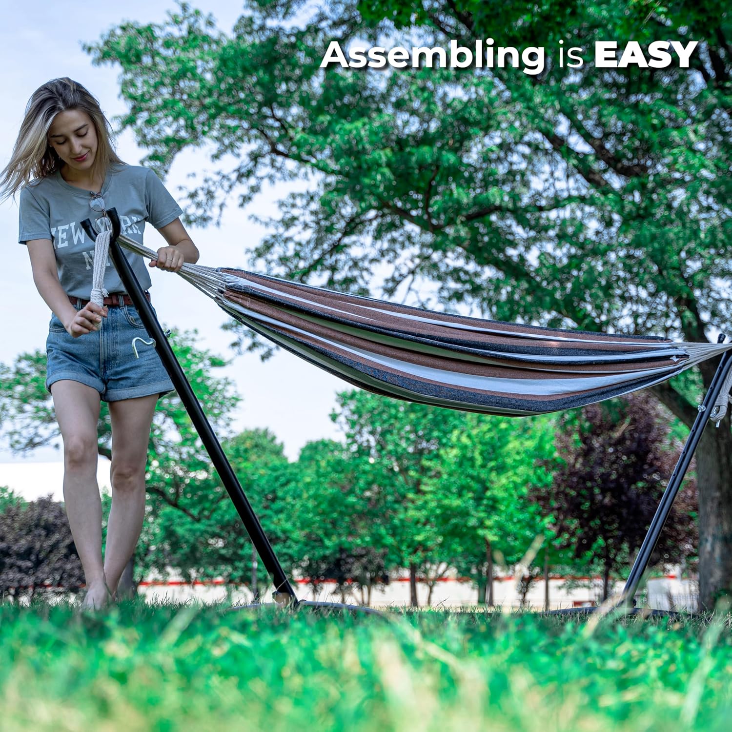 | Item Type Name | Backyard Expressions Double Camping Hammock with Steel Stand & Carrying Bag, Adjustable Height, Ultra Soft Cotton Blend, 550 lb Capacity, Indoor & Outdoor Portable Hammock |