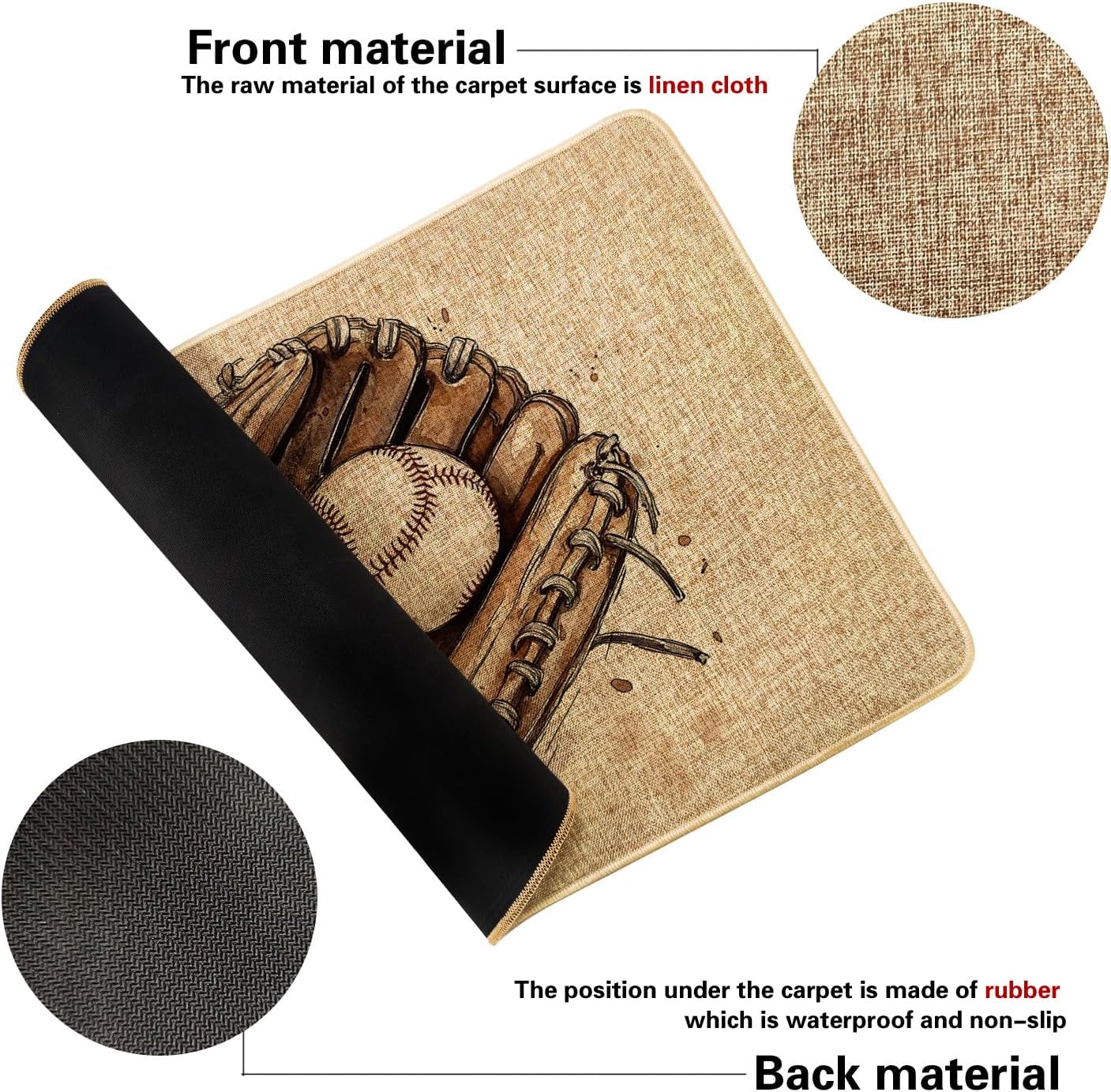 Baseball Glove Doormat, Rustic Brown Entrance Mat for Outdoor & Indoor Decor, Sports-Themed Design, Non-Slip Waterproof Dust Absorbent Welcome Mat, Easy to Clean 29x17 Inch
