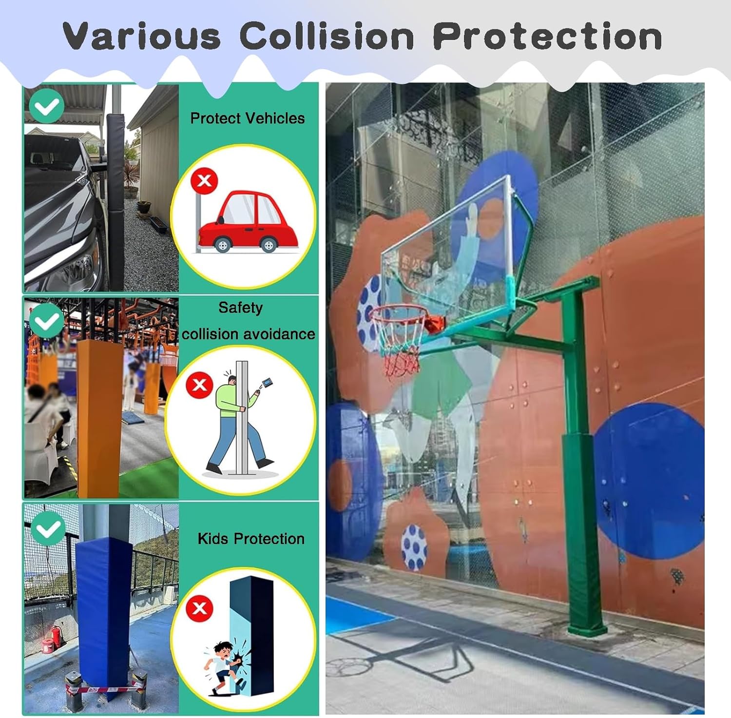 Does padding protect from impacts and scratches?● Premium thick sponge padding absorbs impact, protecting users from bruises and dents in gyms, garages, or playgrounds.Is installation process easy and secure?● Full-length industrial-strength fasteners design allows quick, secure installation without tools. Stays in place even under heavy impact.Are pads suitable for outdoor use?● Durable PU cover waterproof and UV rays for long-lasting use indoors/outdoors. Wipe-clean surface ensures easy maintenance.Specifications● Thickness: 1 inch ( 2.5 cm ) High-Density Foam Core● Height: 72 inch / 6ft(183 cm)Full-Length Protection● Material: Durable PU Leather + Soft Cotton Interior● Closure: Tool-Free Velcro Wrap● Compatibility: Fits Square Poles from 2 x 2" to 12 x 12" ( 5 x 5 cm - 30 x 30 cm )● Custom Service: Size & color options available upon requestPackage Include: Basketball Pole Pad x 1Our Advantages● Custom Cut to Fit: Get the exact length you need for a perfect, secure pole padding.● Pick Your Color: Match your deck, garage, canopy, parking lot, playground, gym, or boat style (many options!)● High-density foam core maintains shape even after repeated impacts, ideal for gyms, schools, or professional studios.● This listing is for square poles only—please contact if you need round pole protection.● For outdoor use, occasional wiping is recommended to extend the product lifespan.Warm Tips- Manual measurement,there will be 1-3cm error, please understand.- If a slight odor is normal, it will disappear within two to three days.- Due to light and personal differences in color understanding, there will be small color difference,in kind prevail.