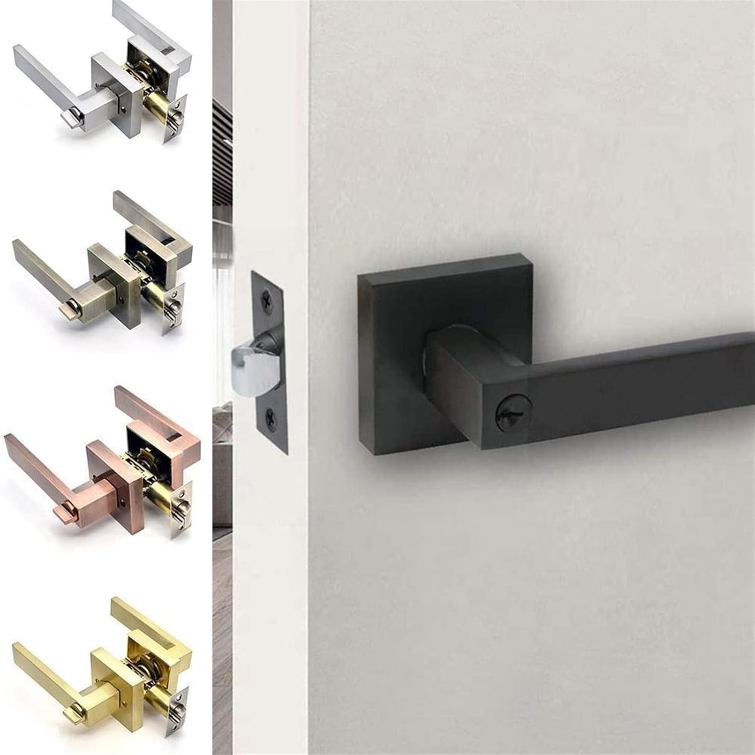 LocksSpecifications: Suitable for door thickness 35-45mmMaterial: aluminum alloy, copperScope of application: anti-theft door, interior door, plastic steel doorColor: square-black, square-silver, square-green ancient, square-red ancient, square-goldenFeature:The installation is simple and convenient in one step, the grip is comfortable, and the product is exquisite and beautiful.Lock body 60-70mm adjustableHole distance 60-70mmPlease check the original shape and size before buying, remember! If the length of the lock cylinder is between 65-70mm, the smaller 70mm can be used. If the height of the lock cylinder is greater than 30mm, you need to buy a larger 70mmDisassembly method: use a Phillips screwdriver to unscrew the middle screw, and pull the lock cylinder out toward the knobComment:1. Manual measurement tolerance is 2-5g. Please don't mind your substitutes.2. Due to different monitors, the picture may not match the actual color of the product. thank you very much!3. SKU color is product colorPackage Included:1*Indoor door lock corePlease note: other accessories are not included.