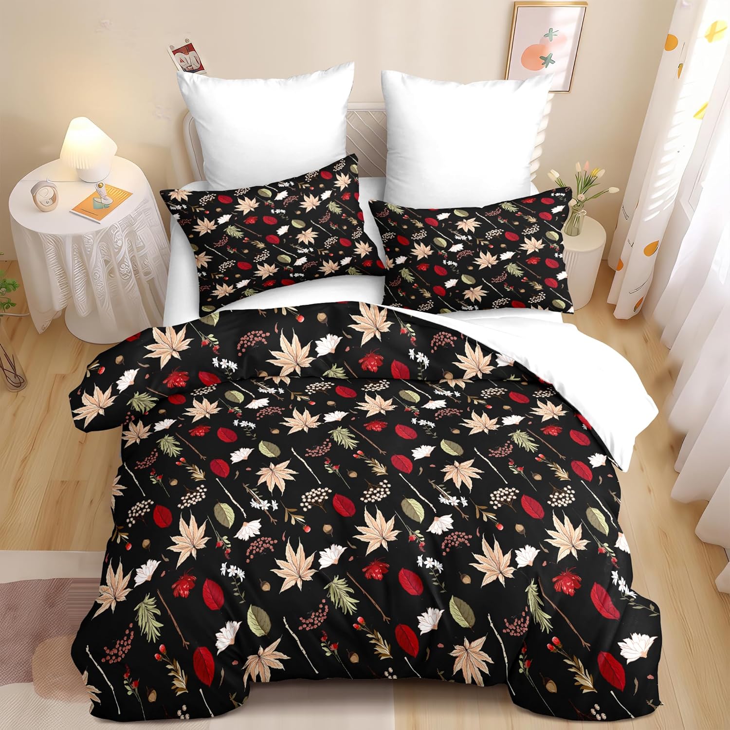 Material: This comforter cover sets twin size is made of ultra soft ultra-fine fibers, more durable than cotton. Continuous softening after each wash. This floral duvet cover sets lightweight, without shrinking, anti pilling, anti wrinkle, durable and long-lasting. This black botanical duvet cover does not use chemicals. Size Information: 1 Twin size black botanical duvet cover 68"X 86" (173cm*218cm) & 1 pillow case 20"X 30" (50cm*75cm). Excluding fillers. Unique Design: Our black duvet cover set patterns is clear patterns and anti fading. 4 corner ties to prevent the fill from bunching or slipping. The unique design of these quilts perfectly matches other interior decorations. Usage: The best choice for Halloween, Valentine's Day, Birthdays, Wedding Anniversaries, Christmas and other holiday. The black comforter cover sets for bedroom, dorm rooms, hotels, guest rooms, RVs, camping and other places to keep your comforter clean. Presents for family, friends, parents, children, boys, girls, teenagers, adults, women, men. Tips:Due to monitor differences, there are some color differences between the image and the actual product. Manual measurement, please allow an error of 2-3 centimeters. Machine wash in cold water and tumble dry at low temperature. Service: We are committed to providing high-quality, comfortable, and fashion bedding, so that we provide you with 365 days of high-quality sleep. Welcome to our store to purchase more styles. If you have any questions, please contact us and we will process your request as soon as possible within 24 hours.