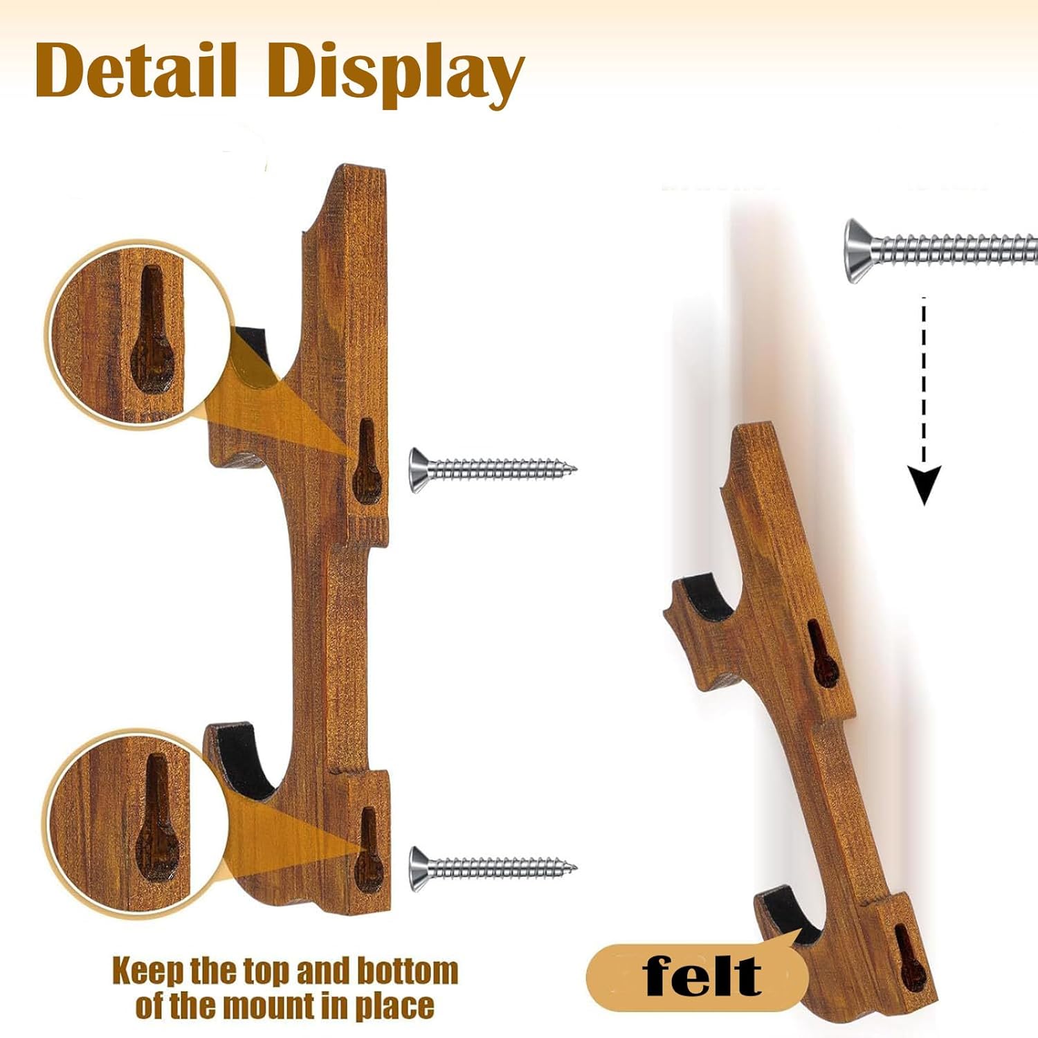 Features: ●Exquisite bow wall hanger that can hold up to bow and archery simultaneously; ● 2 wooden bow hanger for wall,This set is high quality and contains special dyes for polishing and dyeing; ●Accommodates bow and is covered with felt for better protection and fixation; ●Bow hanger for wall is easy to hang on the wall mounts with in minutes; ●Make your bow an eye-catching display to your all guests and have easy access to grab it when you need it; Product details: ★Material: Wood bow wall hanger. ★Net weight: 150g. ★Color: brown. ★Package content: 1 set of bow rack.