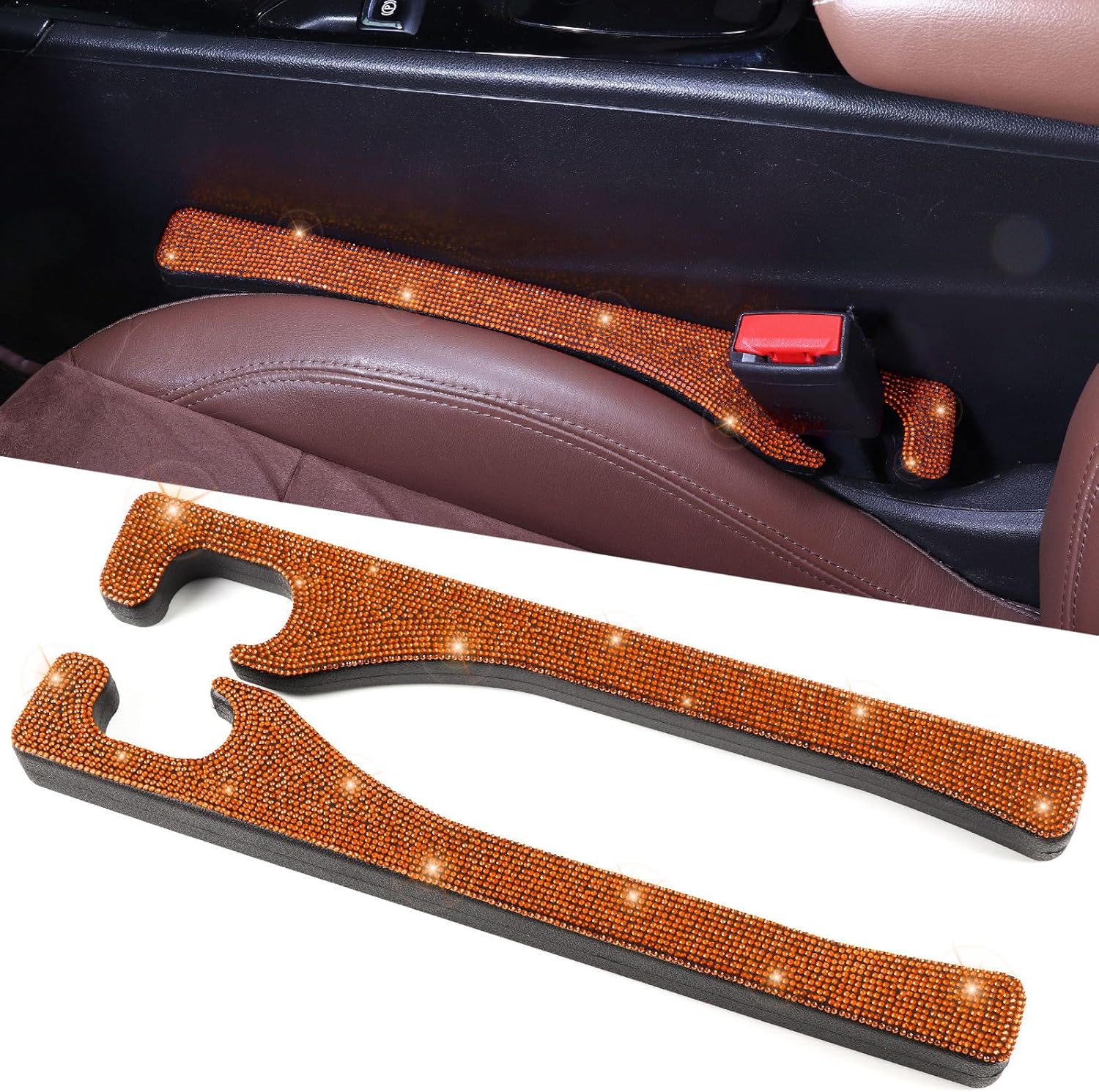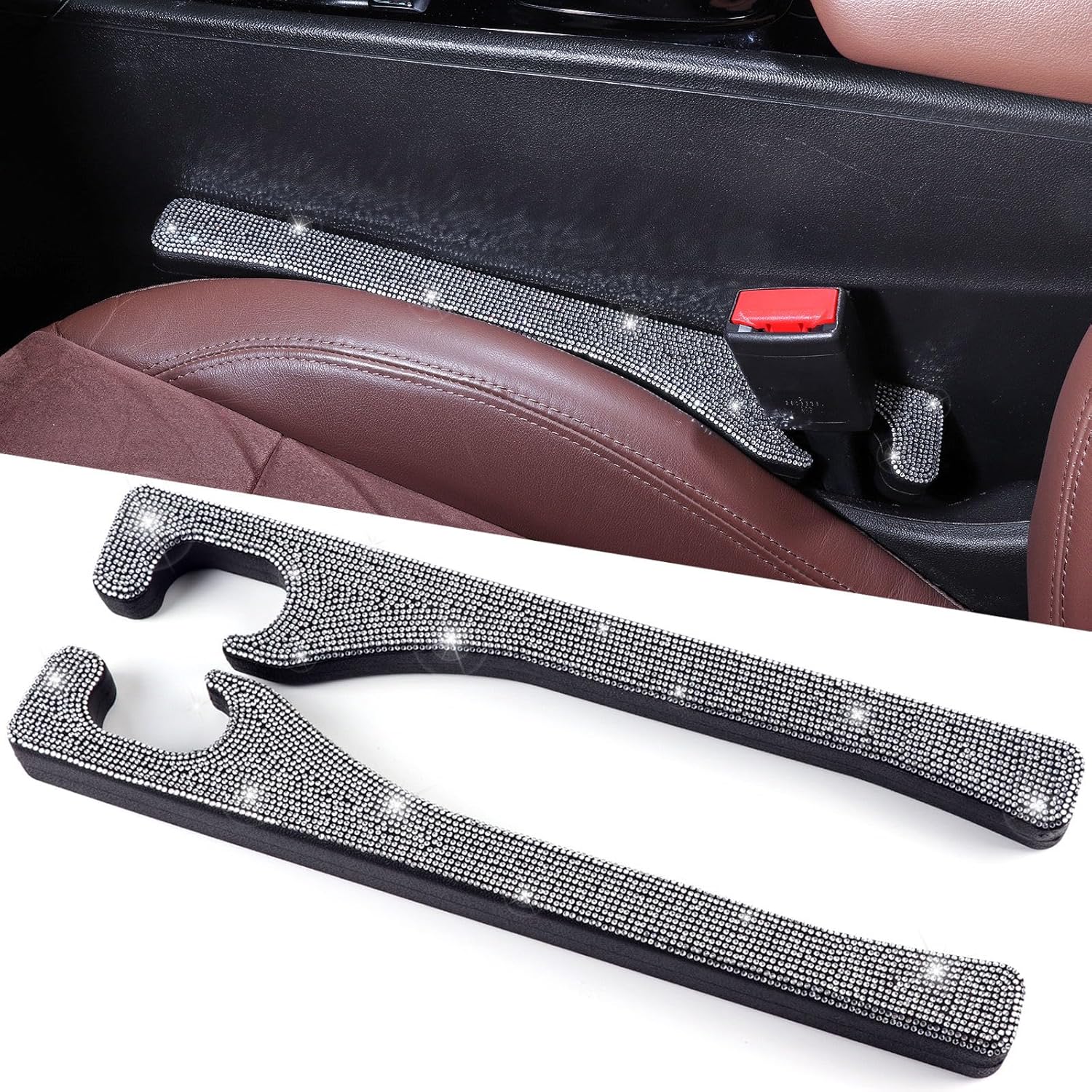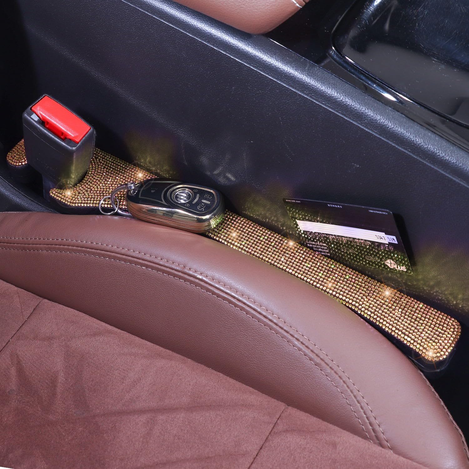 Briwill bling champagne bling gap fillers - a newly developed patented protrcted product of our company in 2024, it solved the trouble of losing things in the gap of your car just like cards, key, coins, and mobile phone. A customer even unexpectedly found his credit card that had fallen in the car and been lost for two years when installing this product. he remarked that if he had bought champagne seat gap filler earlier, he wouldn't have had to reapply for a new credit card lol. Feature: 1.The beige rhinestone car accessories prevents keys, phones and more from falling down the gap 2.Our beige bling car accessories for women moves with the seat, only one installation, no more readjusting or reinstalling required 3.Our champagne colored car accessories suitable for the majority of cars and SUVs. Specifications: Color: Classic Black Material: Polyurethane Size: 15.1"x 2"(H*W) Universal Fits: Majority of cars and SUVs Package: 2 * champagne car gap filler