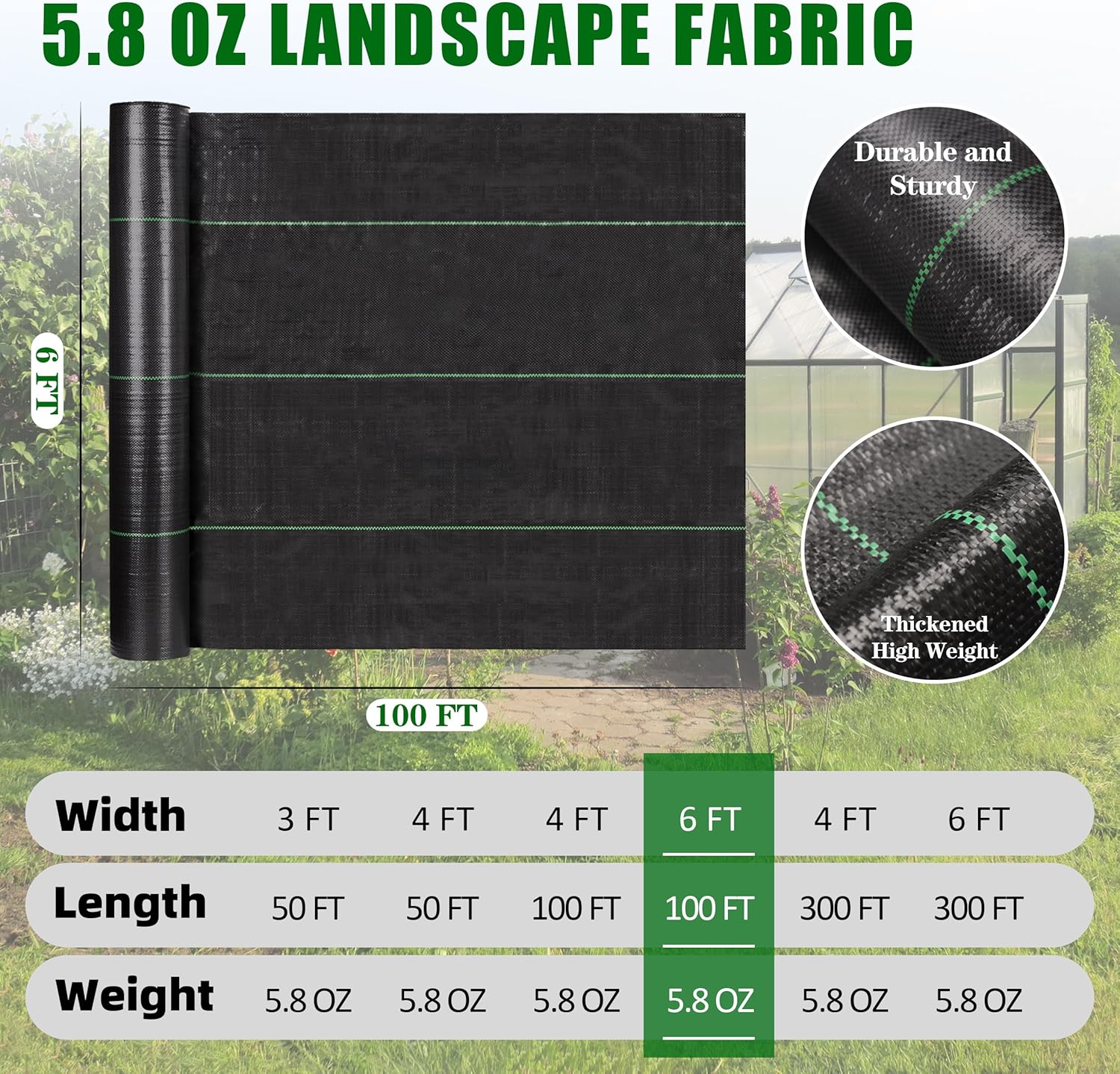 ZJIA Bundle of 4ft x 50ft and 6ft x 100ft Landscape Fabric Heavy Duty for Garden