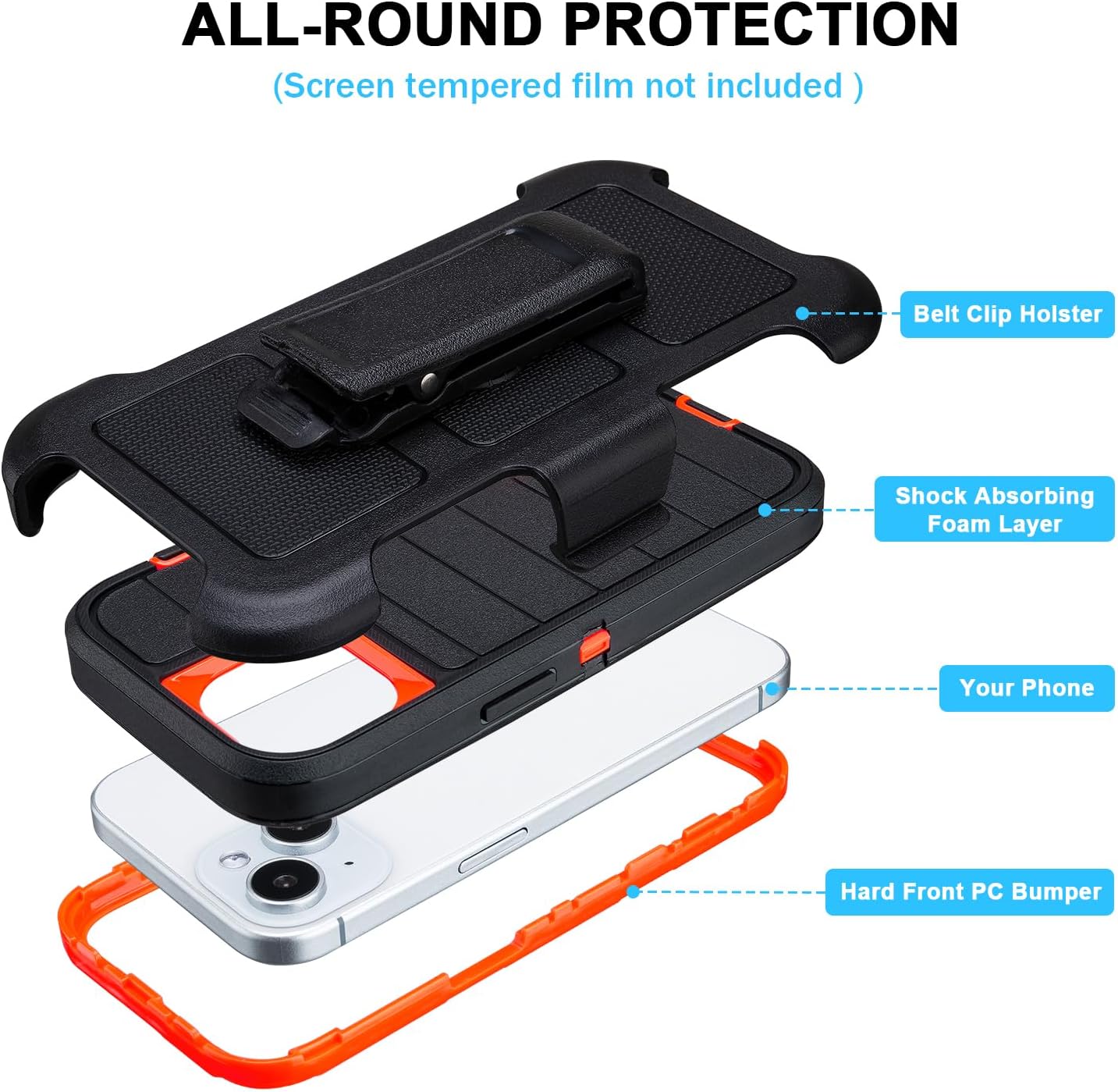 | BuiltIn Media | 1 x Heavy Duty Shockproof Phone Case, 1 x Stand Belt Clip, Note: Only for iPhone 13 case, screen protector not included |