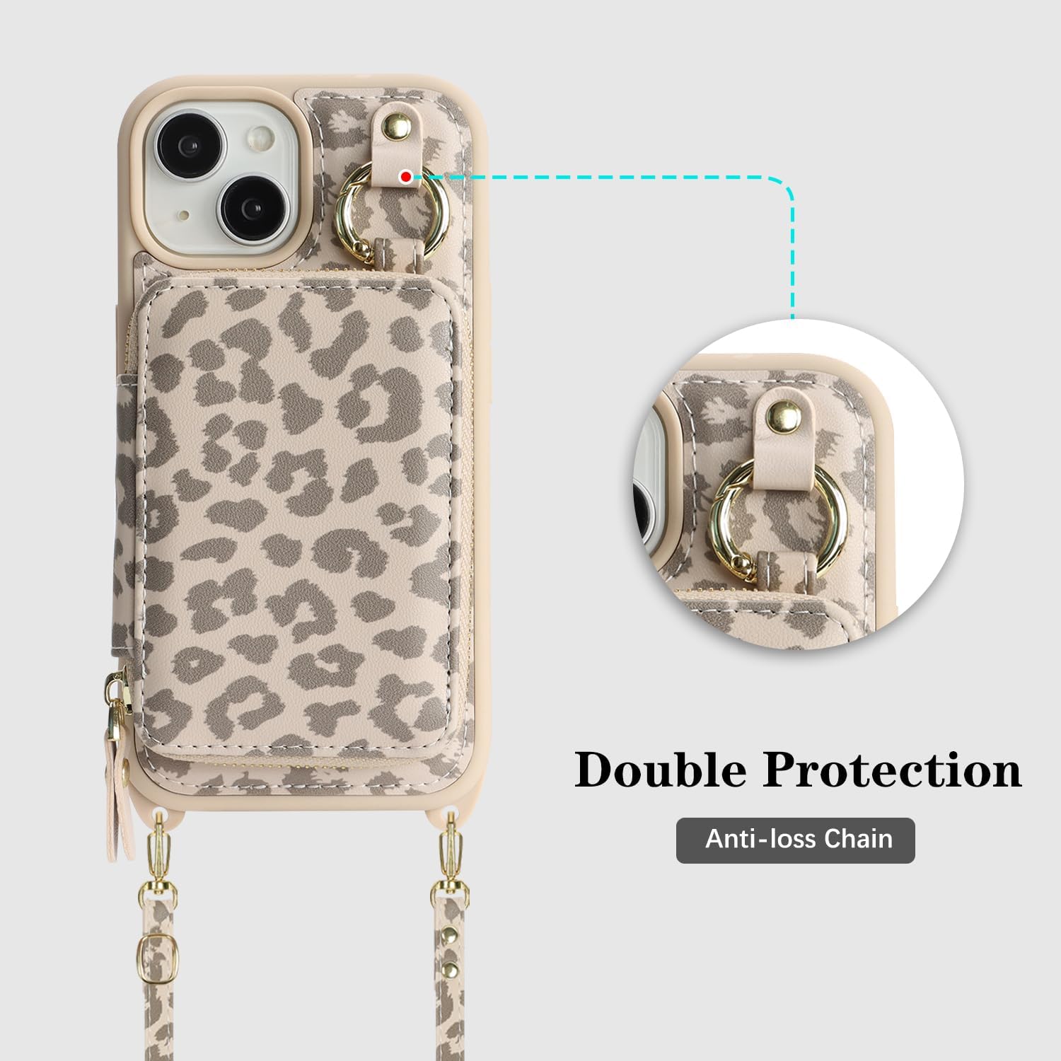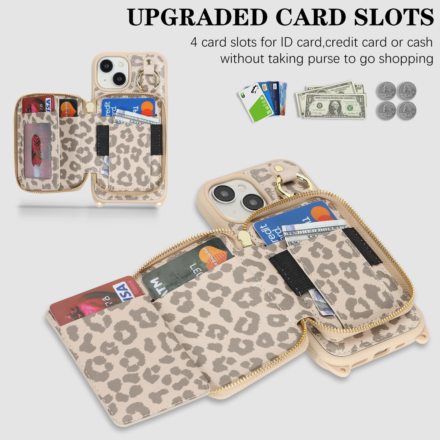 Cavor for iPhone 15 Wallet Case with Card Holder for Women Men, for iPhone 15 Case with Strap, Crossbody Lanyard Phone Case, Magnetic Detachable Compatible with Magsafe-Beige leopard