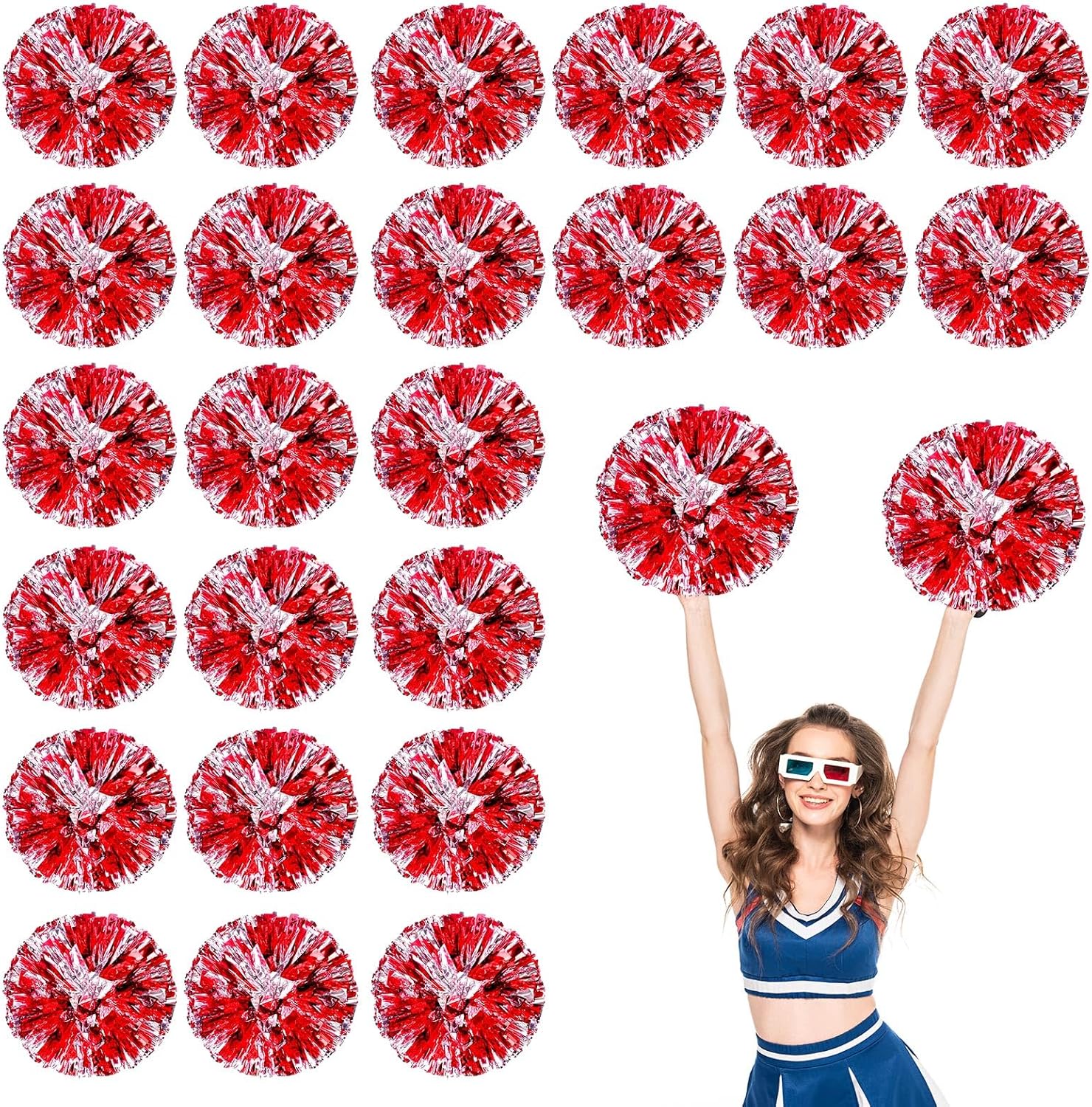 Product descriptionConvenient use:The cheer plastic pompoms bulk have rubber bands on both sides to hold them in place, to use, just remove the rubber bands and shake them a few times to puff them up.Specifications:Material: metal foil, plasticSize: 30 cm/ 11.8 inches
