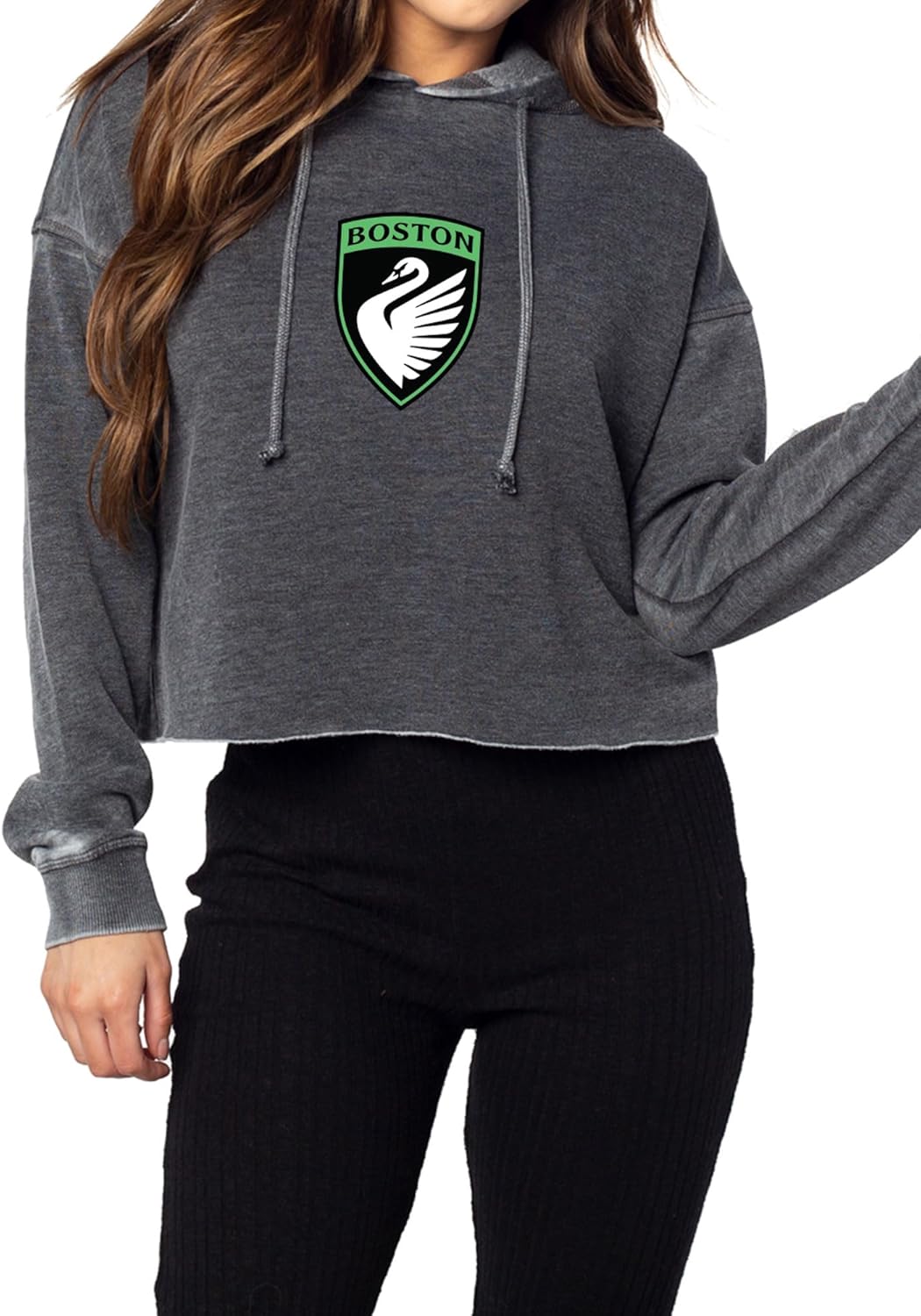 Roomy and boxy burnout fleece waist-length hoodie. Features a drawstring hood, dropped shoulders, and raw edge hemline. Burnout wash process provides a unique, washed and worn look and a comfortable feel.