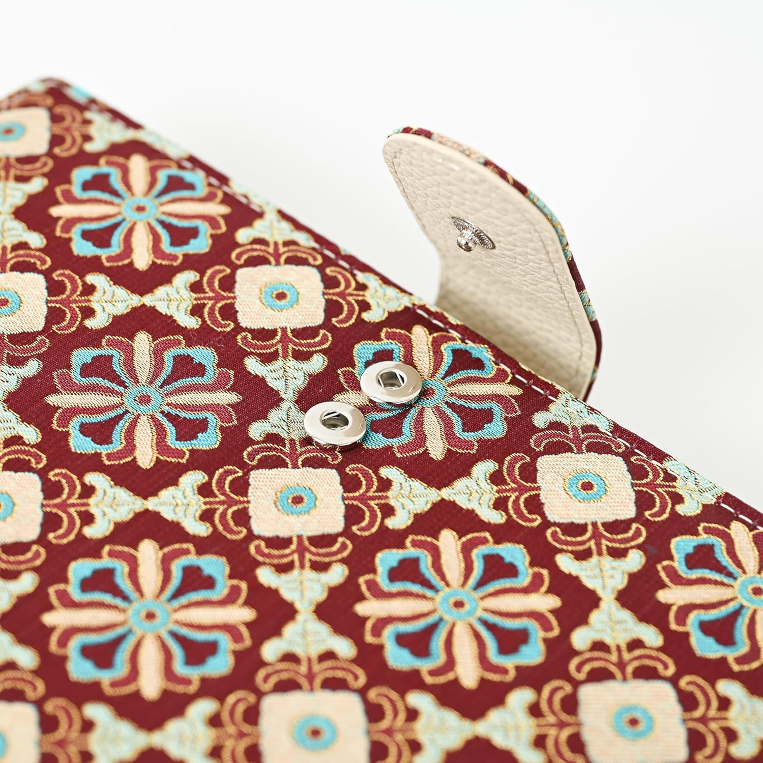 This booklet is made of traditional song brocade fabric with oriental aesthetic touch; cover with leather buckle design, simple yet sophisticated. The inner page is removable and features a multi-functional section such as a pen holder, card slots, storage pocket, and more. It allows you to easily change the inner pages (can be used for notes, schedules, and bills) so you can record your daily routine, and store small items such as cards, receipts. Lightweight and portable size makes it perfect for commuting to work or studying, making it a great way to record your life and give as a gift
