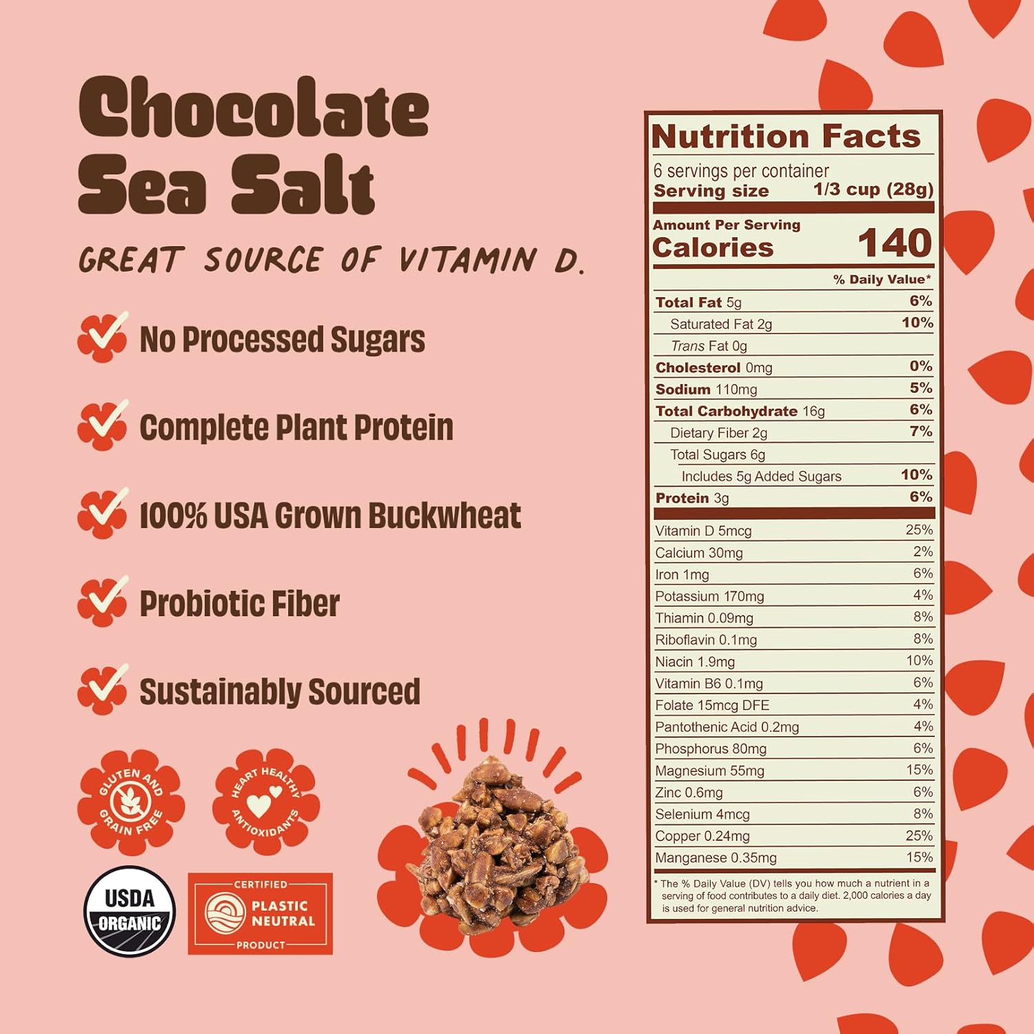 | Item Form | Lil Bucks Clusterbucks Gut Friendly Clusters made with Regenerative Organic Sprouted Buckwheat, Gluten Free Snack (Chocolate Sea Salt, 3 Pack) |