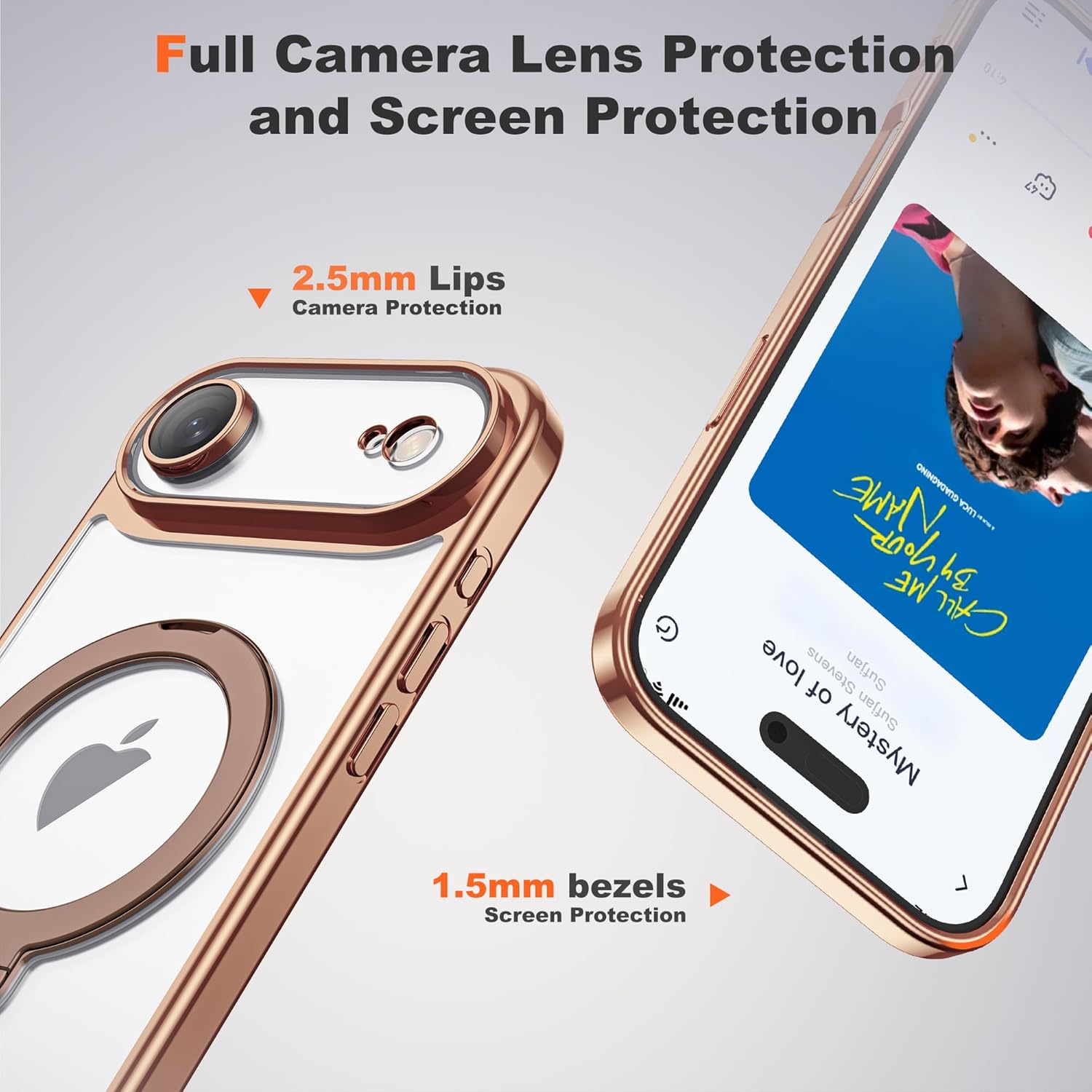 | Additional Features | 360° Spin Kickstand, Clear Design, Heavy Duty Protection, Plating Process, Slim Fit |