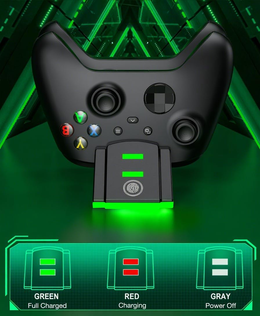 | BuiltIn Media | 1x Type-C Charging Cable, 1x Xbox Controller Charging Station, 2x Battery Covers for Xbox One, 2x Battery Covers for Xbox Series, 2x Rechargable 4320mWh Battery Packs |