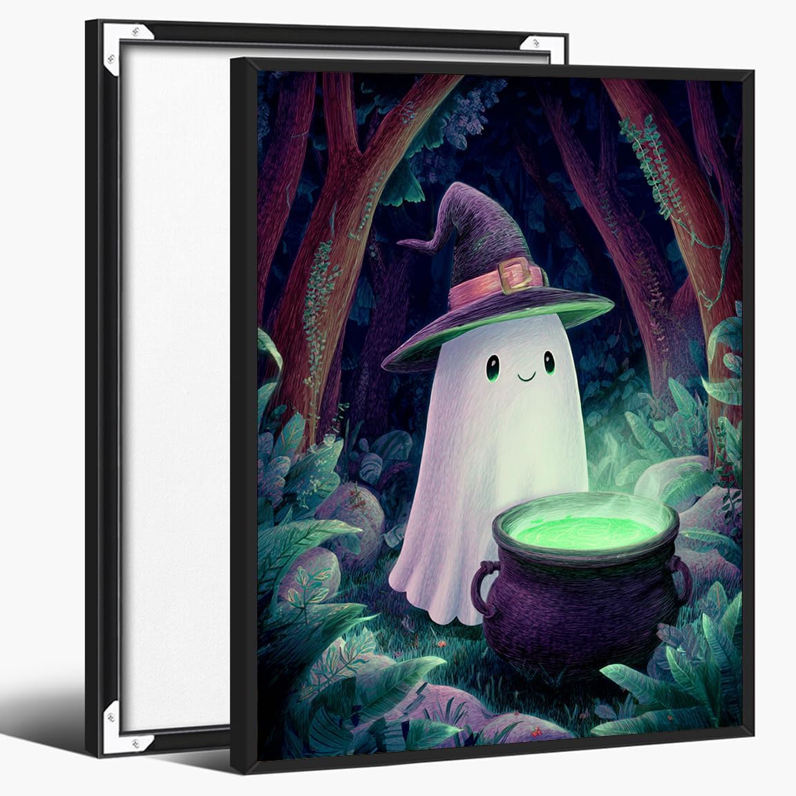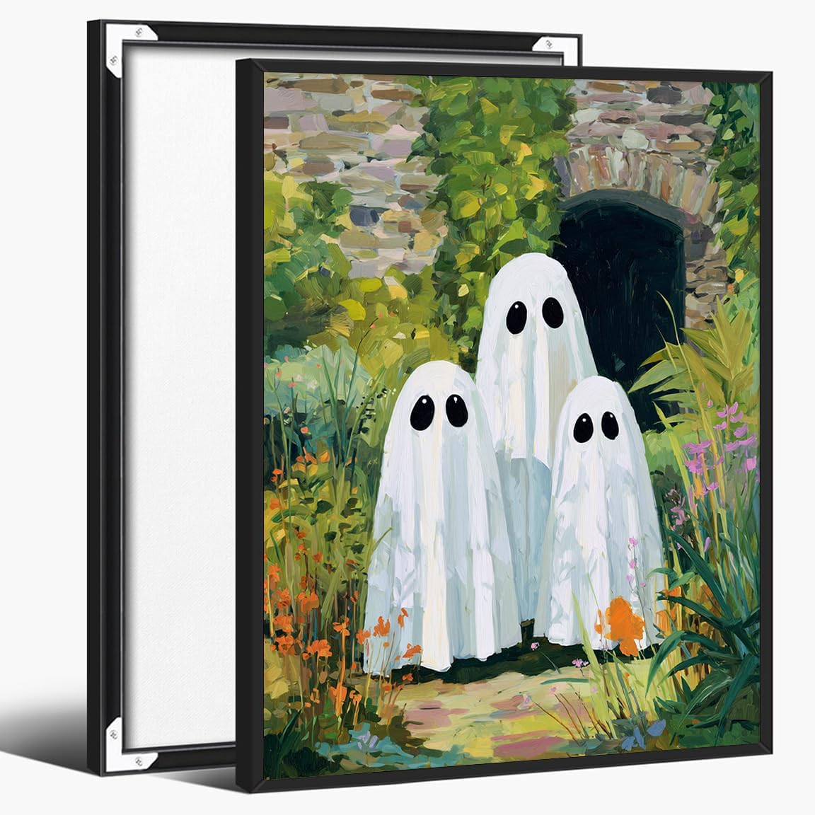 Celebrate the gentle side of Halloween with this delightful canvas print featuring a sweet ghost watering flowers in a lush, overgrown garden. A blend of storybook softness and seasonal charm, this artwork is perfect for those who love cottagecore vibes, floral themes, and quiet whimsy. Whether decorating for spooky season or simply bringing a touch of fantasy into your space, the soft colors and peaceful composition make it an inviting choice. Available in unframed, stretched, or black-framed options, this piece turns any room into a garden of ghostly calm.