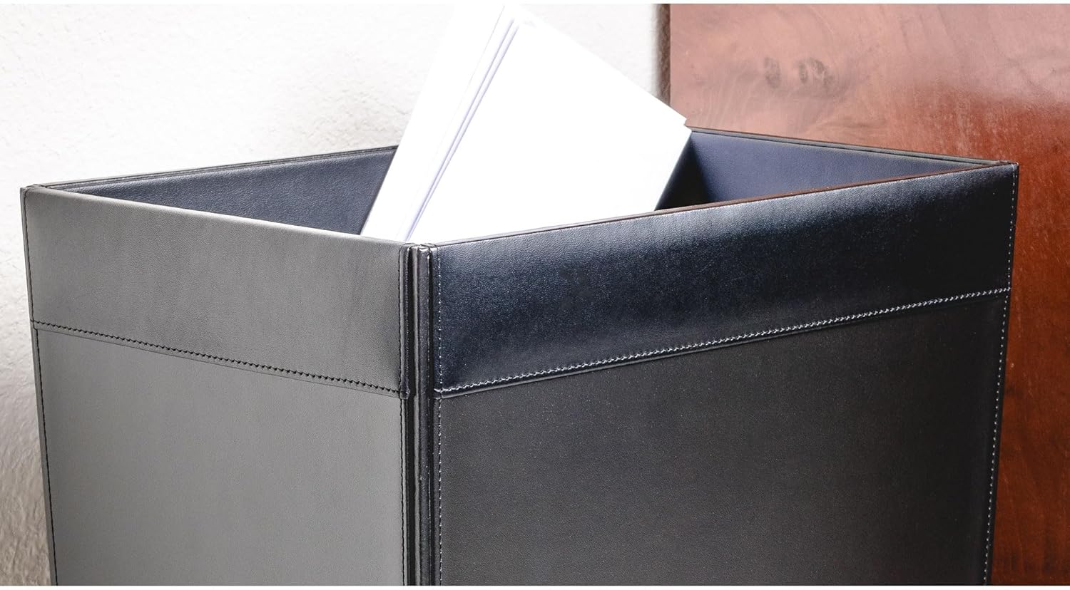 This trash bin is sure to complement the polished and professional look of your boardroom or office. The black leather coordinates seamlessly with Dacasso's line of conference room items as well as their leather desk accessories. Create the unified, efficient work area you desire without compromising your design aesthetic.