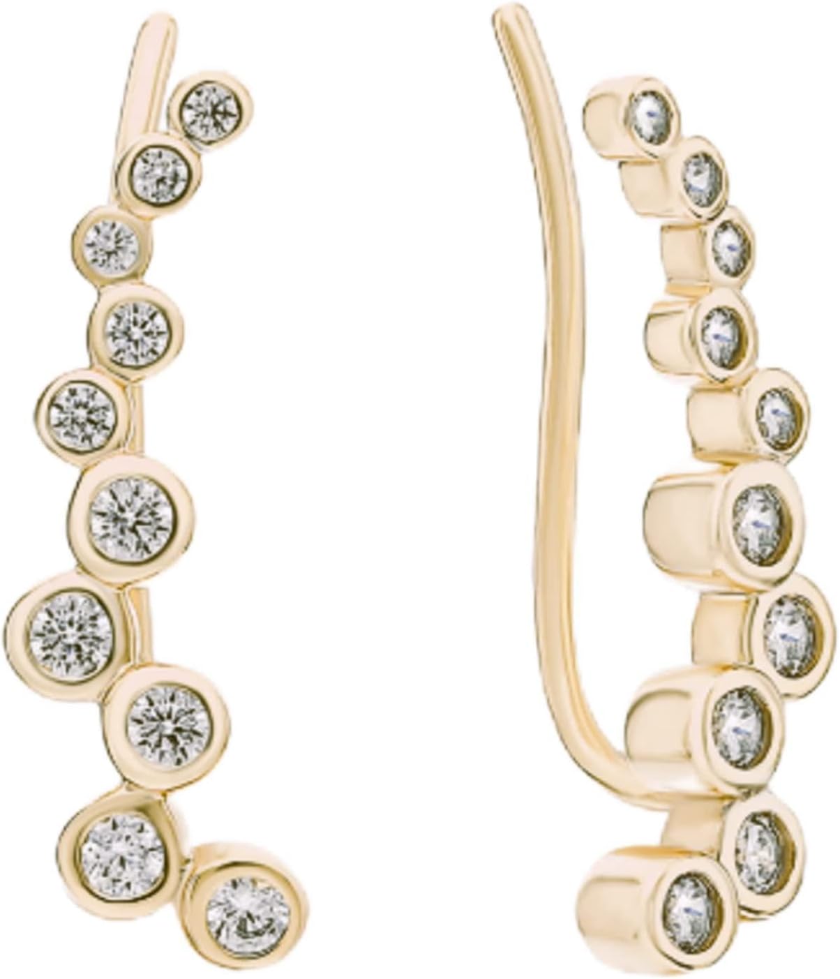 These CUSHIONBLUE ear climber earrings feature a long, curved design that follows the natural shape of the ear. The earrings are set with round stones totaling approximately 0.50 carat weight and are crafted with 14K gold. Designed in a wrap-style ear climber form, the earrings sit securely along the ear without requiring multiple piercings. The elongated profile offers a modern silhouette suitable for everyday wear or special occasions. This item is sold as a pair and is intended for adult fashion jewelry use.