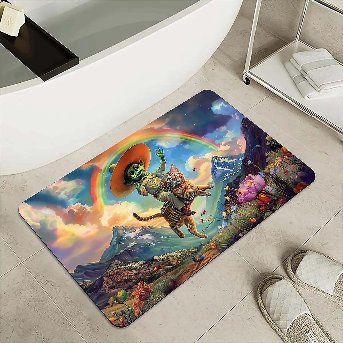 Features: [Beautiful pattern Design] Delicate pattern on a soft diatomaceous earth non-slip bath mat provides an artistical and relaxed feel to the bathroom.[Innovative Design]With the material of nano-level fiber, diatom mud latex mixture foam, as well as silicone rubber anti-skid foam, makes the rugs have upgraded absorption capacity. Meanwhile, it is no smell and no harm to health.this material is easy to clean and lasts for years.[Rubber Backing Technology] Super Water Absorbency Rug Mat Is Backed With Very Effective & Durable Rubber In Order To Prevent Skidding. The Rubber Backing Is Also Very Durable & Will Not Fall Off In The Washer Or Dryer. Prior To Placing The Rug On The Floor, Please Ensure The Floor Underneath The Rug Is Clean And Dry. Do Not Place The Rug On Wet Floors.[Multifunction] Apart from using it in the bathroom, it can also be used in your bedrooms, kid's room, laundry rooms, restaurant, hotel, banquet, wedding party as a doormat. Perfect bathroom gift for friends and family! [Keep Your dog and cat Area in Safe and Hygine]Whether you were annoyed by the wet residue or footprint on the floor during your cute doggy or kitten feeding time? You will love the fast drying, stain-resistant, and super absorbent rugs.Tips:Do not place it on sharp objects.