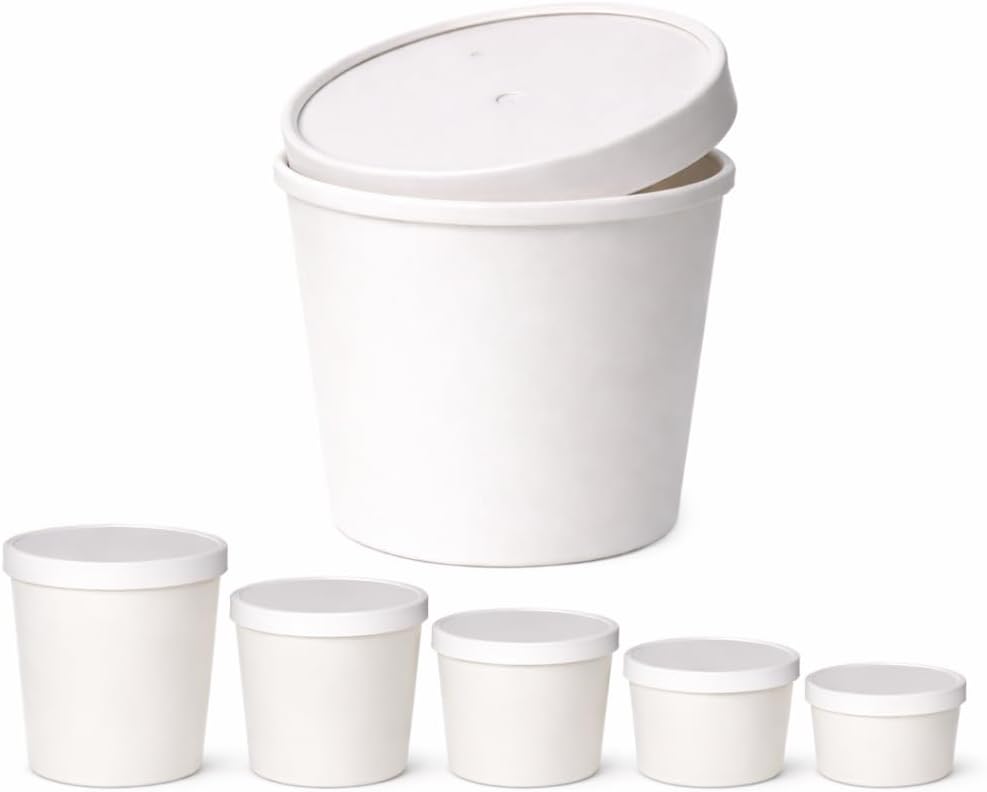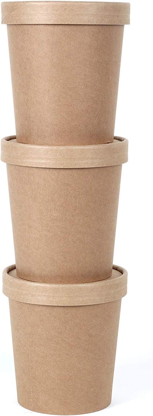 Kraft Food Storage Containers with Vented Lids. Great for buying in bulk, comes in Packs of 25 (Case/500). Biodegradable, Compostable and recyclable. These bowls serve great for Soups, Ice Cream, ‘To Go’ Lunch, Hot & Cold Meals.