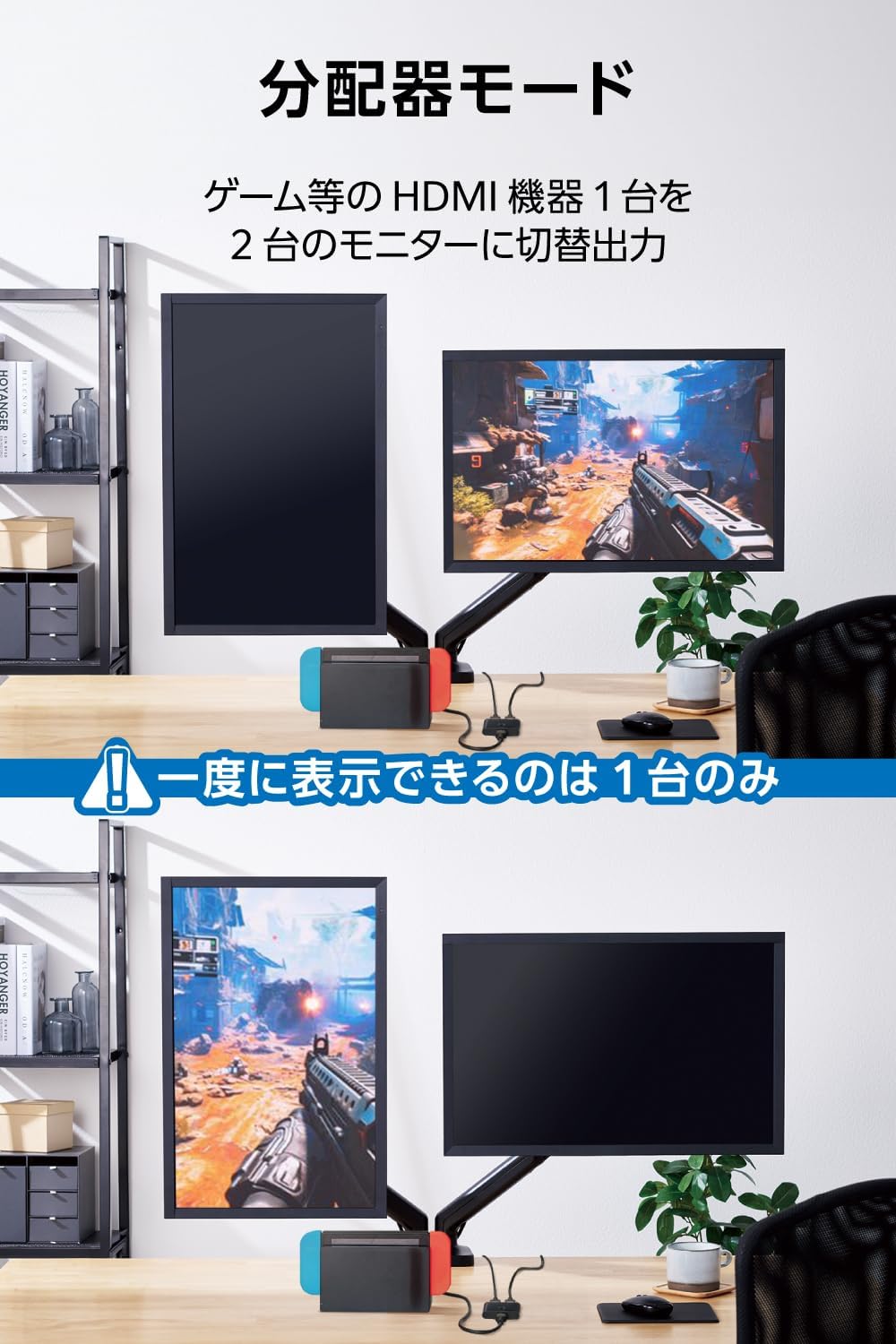 Specifications: ■ Maximum display resolution: 4K60Hz (4096x2160) ■ Main Supported Resolution: 4K (4096 x 2160) 30Hz/60Hz, 4K (3840 x 2160) 30Hz/60Hz, 2K (1920 x 1080) 60Hz, 1080i/720p/576p/576i/480i ■ HDMI Standard: HDMI(R) 2.0b ■HDR: HDR10, Dolby Vision(R), HLG compatible ■Data Rate: 18Gbps ■Video frequency band: 600MHz - Supported video output devices (HDMI): AV devices equipped with HDMI output terminals, home game consoles, media streaming devices, computers, etc. ■ Supported video display devices: TVs, displays, projectors, etc. with HDMI input. ■ Number of Ports: Switch between display devices: Input x 1, Output x 2, Video Source Switch: Input x 2, Output x 1 ■Connector shape: Input and output: HDMI type A 19 pin (port) x 3 ■ Allowed Cable Length (HDMI): Within 6.6 ft (2.0 m) of input and output (When using 4K HDR or 4K60Hz, please use the "Premium HDMI Cable") ■HDCP: HDCP1.4/2.2/2.3 compatible ■CEC (HDMI): Support ■ARC (HDMI): Not supported ■HEC (HDMI): Not supported ■ Product Size (W x D x H): Approx. 2.3 x 2.0 x 0.4 inches (58.5 x 51.7 x 11.5 mm). ■ Body material: Metal ■Weight: Approx. 1.2 oz (34 ■Operating temperature and humidity: Temperature: 32 - 104°F (0 - 40°C), Humidity: 10 - 85% (without condensation). ■Storage temperature and humidity: Temperature: -10 to 80 °C, Humidity: 5 % to 90 % (without condensation) ■Warranty period: 1 year ■Package: Paper box 【Description】 ■This is a bi-directional HDMI switcher that allows you to connect two HDMI devices to a single display or connect one HDMI device to two displays, and easily switch between input and output devices with a single button. ■Supports up to 4K60Hz High definition and immersive video output. ■ Supports HDCP 1.4/2.2/2.3, so it can also be used for copyright protected content such as films. ■ Supports HDR10, Dolby Vision(R), and HLG HDR content so you can get bright and beautiful video output. ■ Connects to game consoles, DVDs, Blu-ray recorders, and players. Tested to work with PlayStation(R)5/4 Pro/4, NINTENDO SWITCH, Fire TV Stick 4K, Chromecast with google TV(4K). ■Can also be used with Windows and macOS. It is also convenient for connecting two or more computers in the office or at home. ※We do not guarantee that it will work with all devices. When connected to Playstation(R) 5, it supports resolutions up to 4K/60Hz and frame rates. It does not support 8K resolution and 4K/120Hz resolutions. ■ Thin design with a thickness of only 0.5 inch (12 mm) that fits in the palm No external power supply required, and it can be stored compactly in a gadget pouch, making it convenient to carry. ■ Adopts a metal case with good heat dissipation efficiency and noise resistance. ■ Please use the "Premium HDMI Cable" for both the input and output side within 2.0 m (4K HDR or 4K60Hz) when using with 4K HDR or 4K60Hz. HDMI cable is not included. Please prepare them separately. ■ *There is no distribution function to output two video display devices simultaneously. ■ This product meets more than one of our own environmental certification standards and displays the "THINK ECOLOGY" mark. ■ We are committed to environmental protection, and the packaging container of the product is made up of only paper, cardboard and polybag. Product inquiries Elecom General Information Center TEL. 0570-084-465 FAX. 0570-050-012 Reception Time / 10:00 - 19:00 24/7 Chat support is also available. Please check 8056.jp for details.