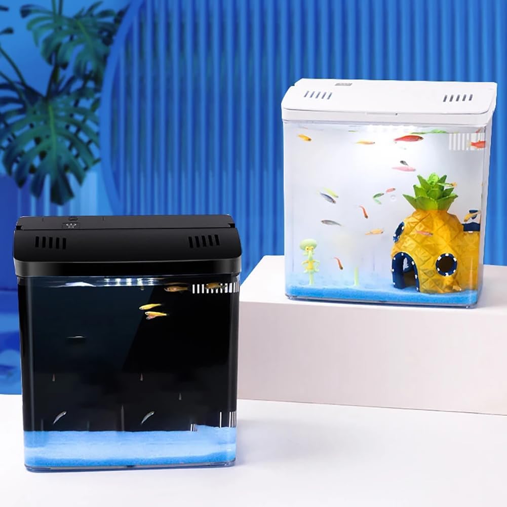 Our fish tanks feature a transparent design that provides a clear view, complements home décor, and helps enhance observation and relaxation.Product parametersmaterial: plasticSize: 20*15*20.5cmColor: black, whiteWeight: 3kgPackage ContentsFish tank*1Filter material*1Water pump*1LED light*1Power cord*1